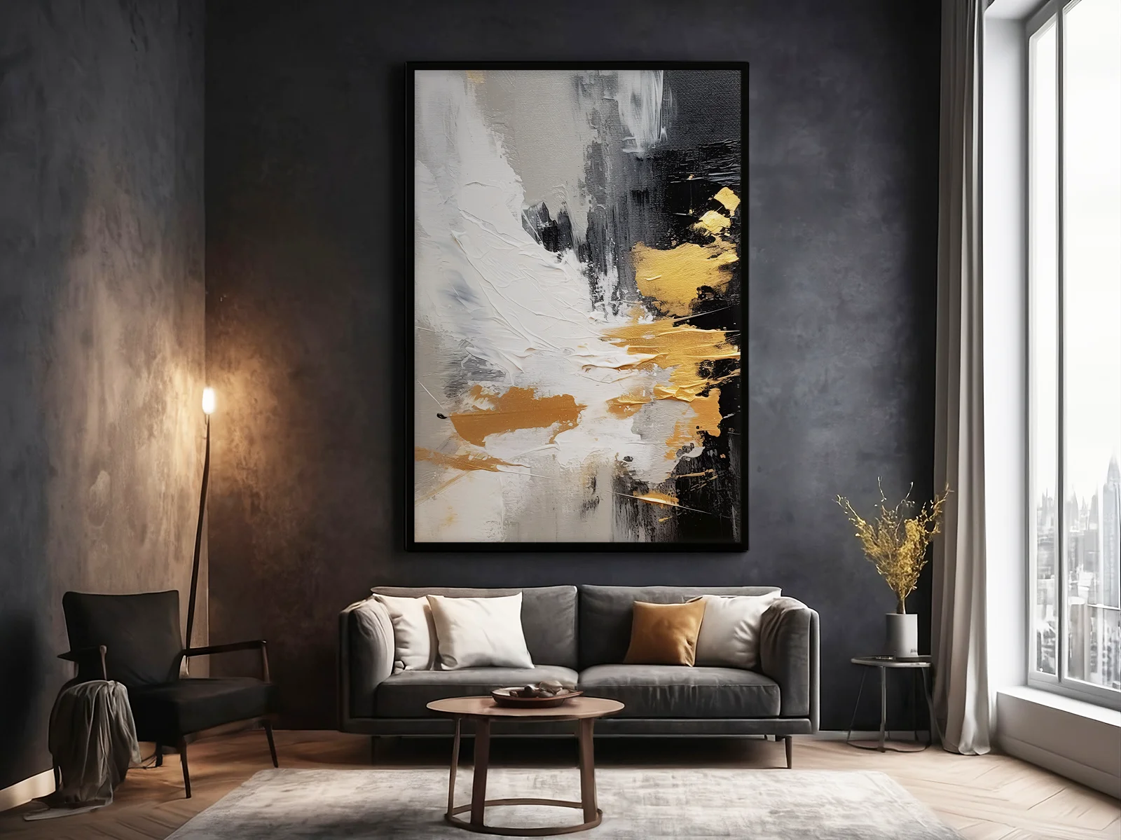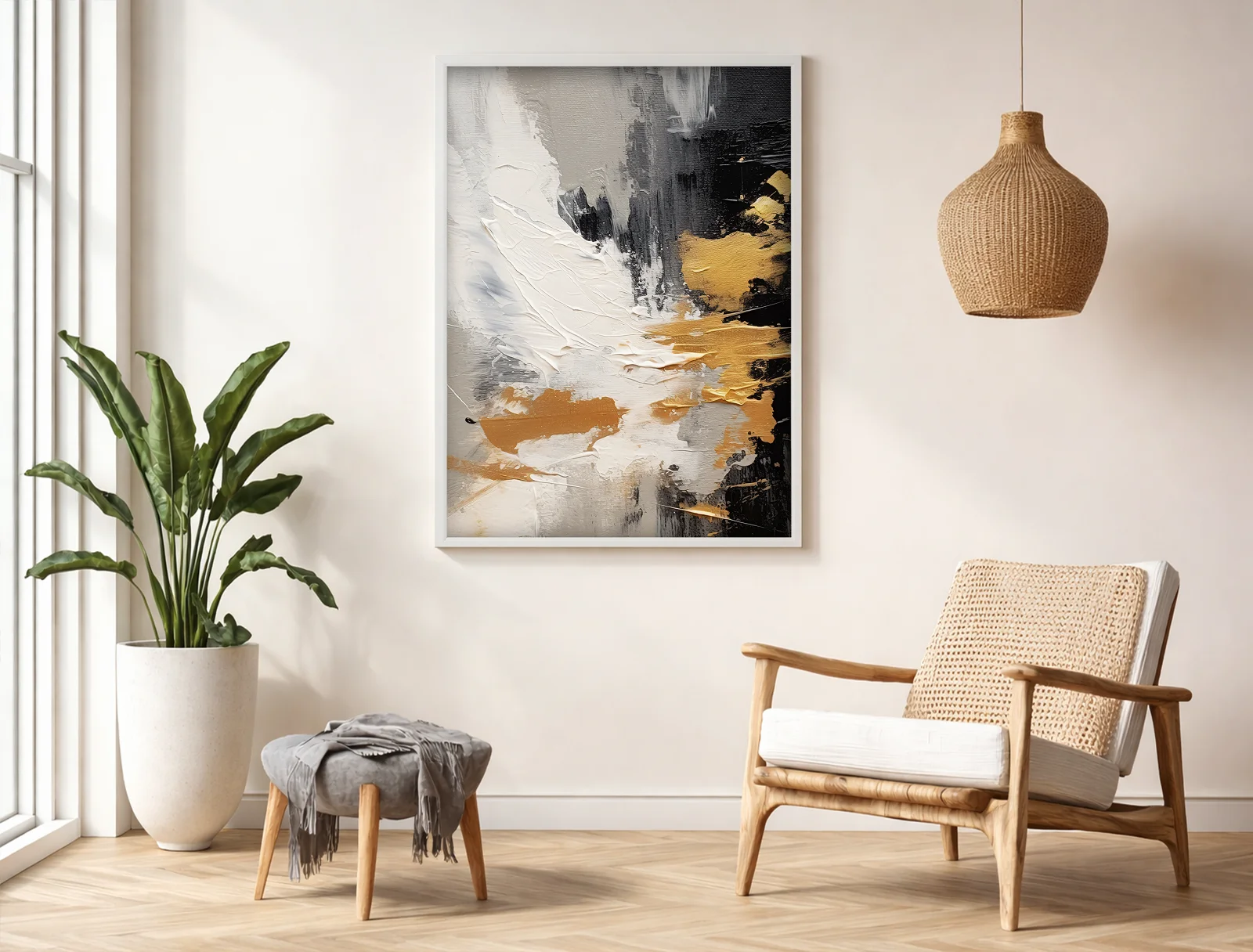 ✅ Картина в раме с абстрактными мазками и золотом. ✓ Эффектный декор для современного интерьера. 🚚 Доставка по всей Молдове. ⭐ Печать картин - Art-Design.md
