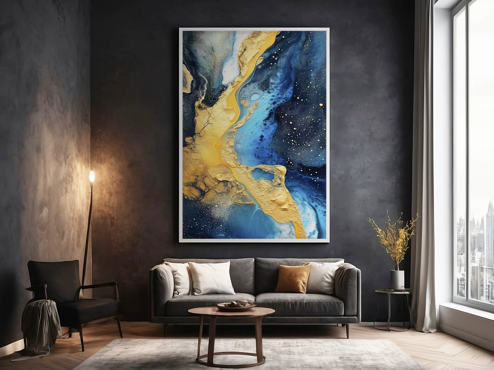 ✅ Картина в раме с глубокими синими и золотыми оттенками. ✓ Стильный акцент для современного интерьера. 🚚 Доставка по всей Молдове. ⭐ Печать картин - ArtDesign