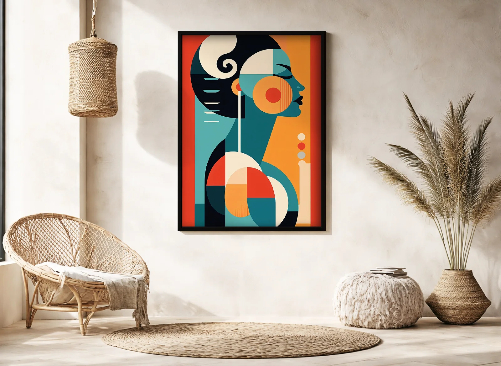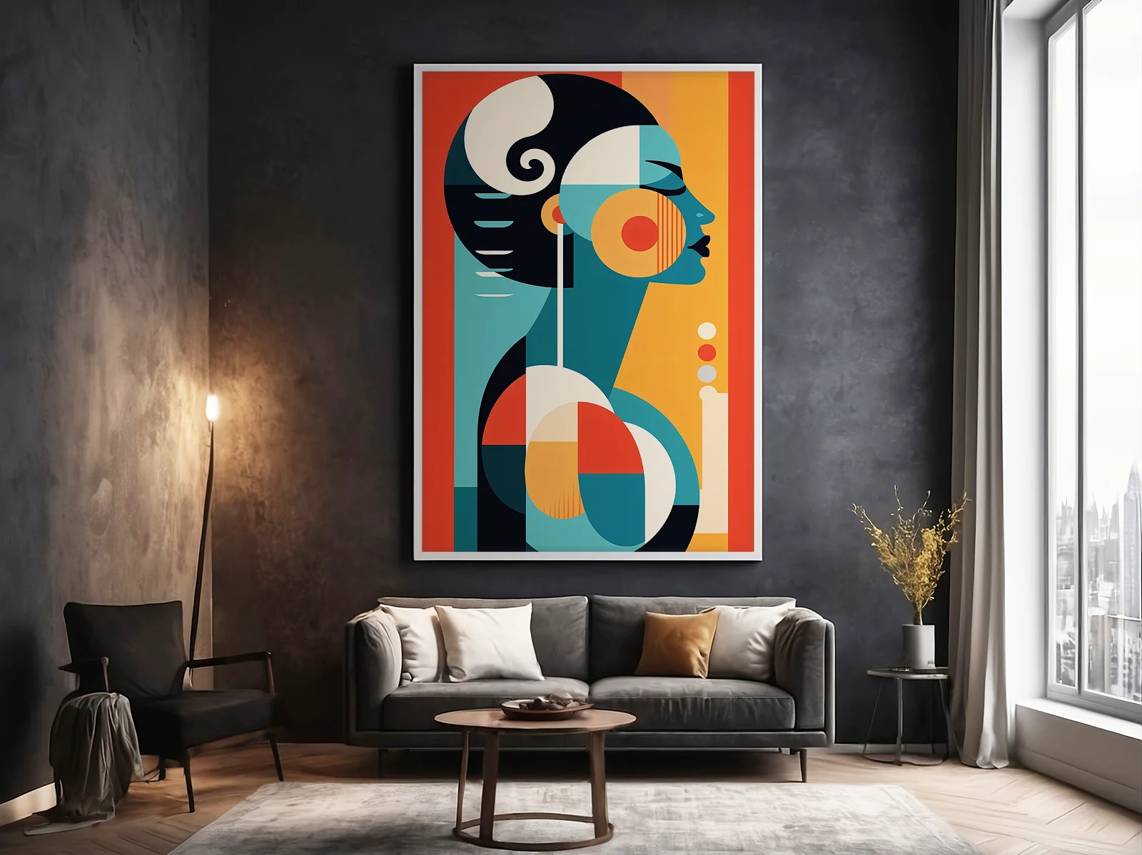 ✅ Картина в раме с ярким геометрическим портретом. ✓ Современный акцент в стиле арт-деко. 🚚 Доставка по всей Молдове. ⭐ Печать картин - Art-Design.md
