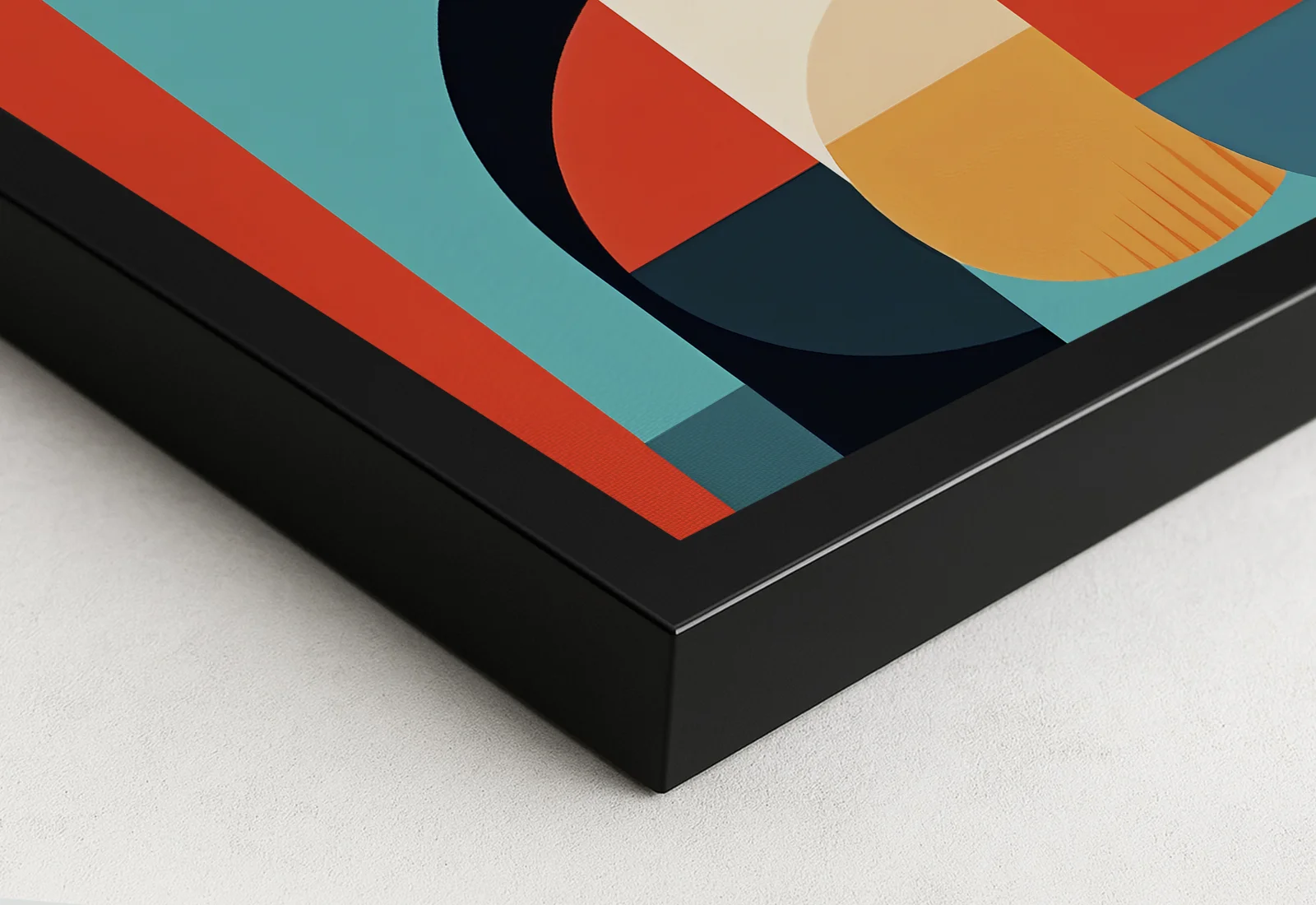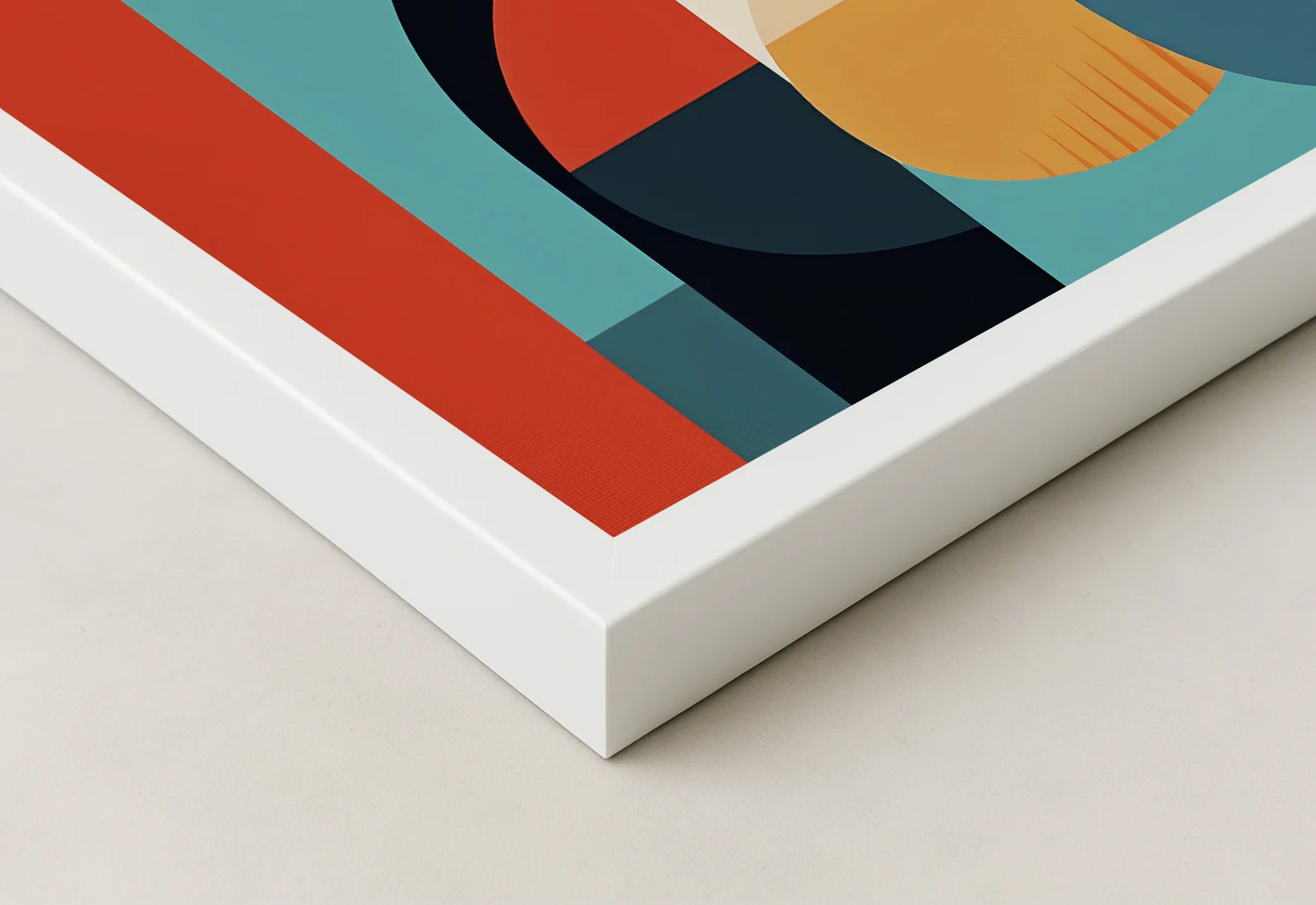 Мне хотелось передать современную эстетику с нотками ретро-стиля арт-деко. Белая рама делает композицию более лёгкой и подчёркивает яркость цветов. Такая картина станет эффектным центром любого интерьера.