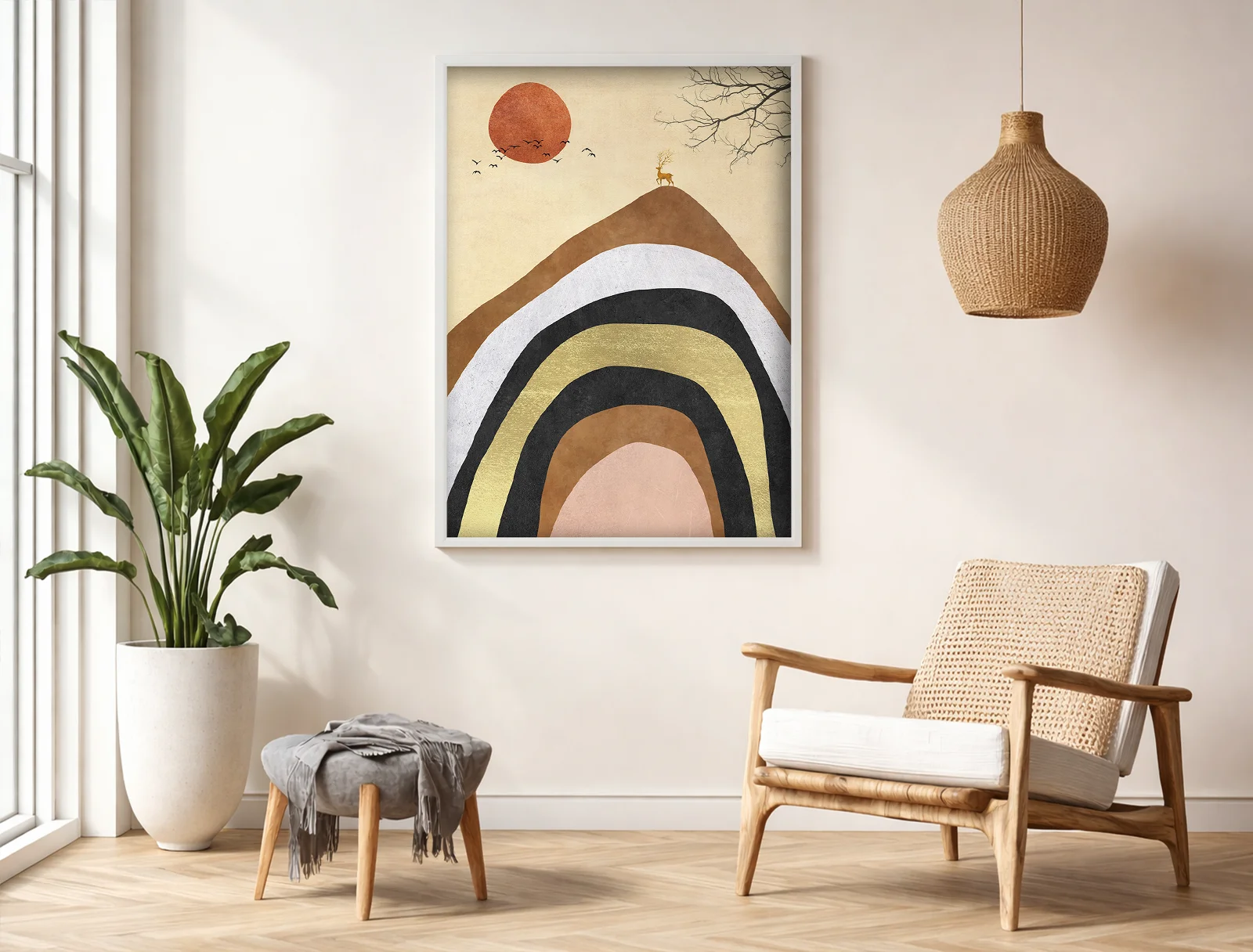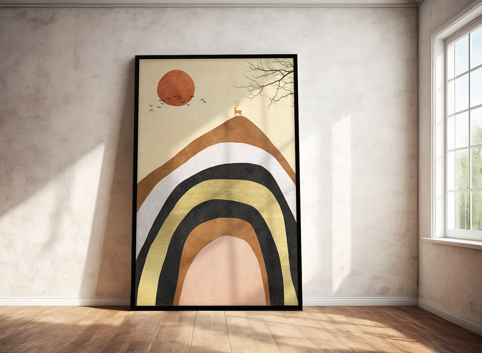 ✅ Картина в раме с горами и солнцем. ✓ Спокойный и тёплый акцент для интерьера. 🚚 Доставка по всей Молдове. ⭐ Печать картин на холсте - Art-Design.md