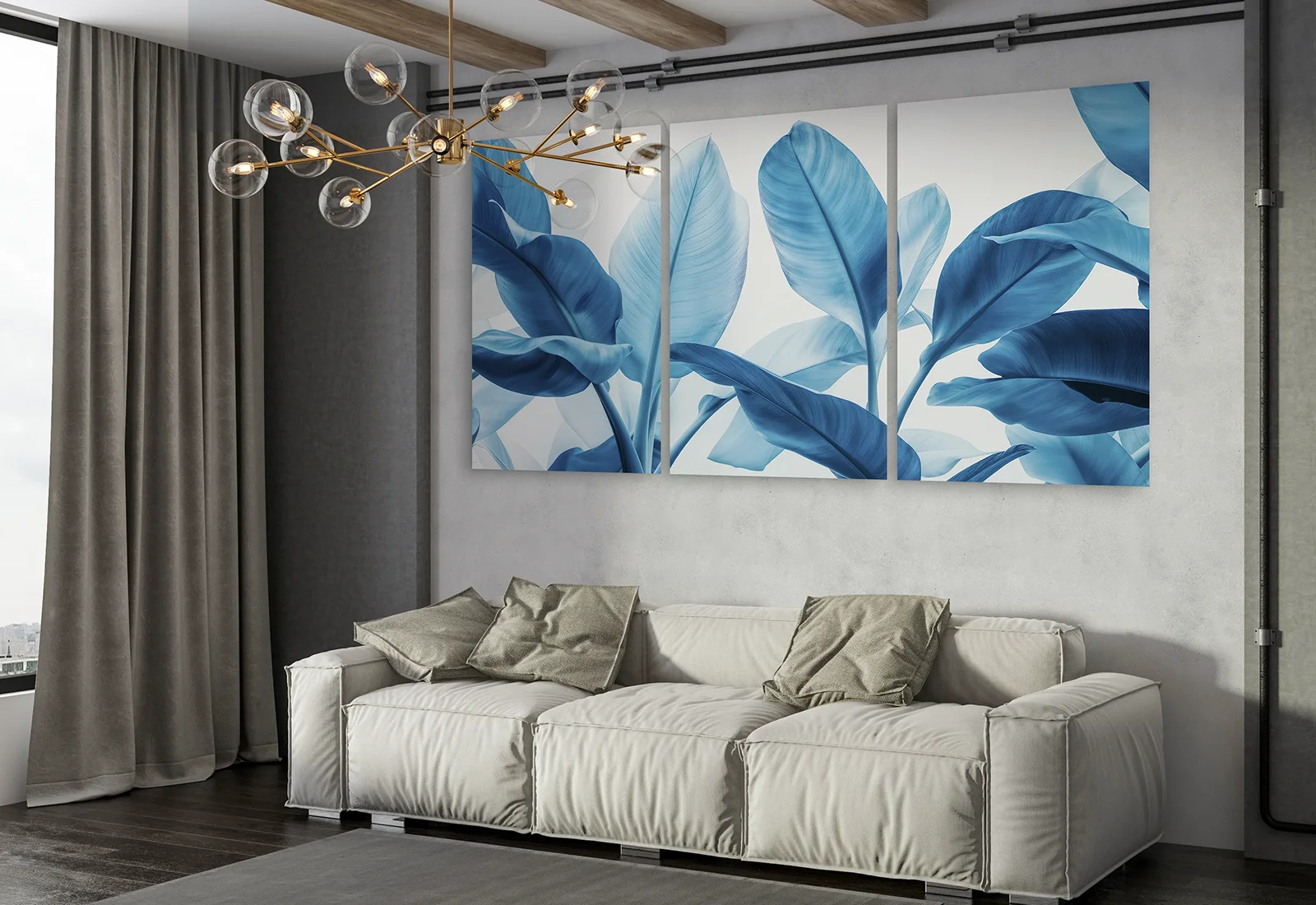 Я выбрал эту модульную картину с синими тропическими листьями за её выразительность и современный характер. Глубокие холодные оттенки создают эффект свежести и визуальной чистоты, а крупные формы листьев добавляют композиции динамику.