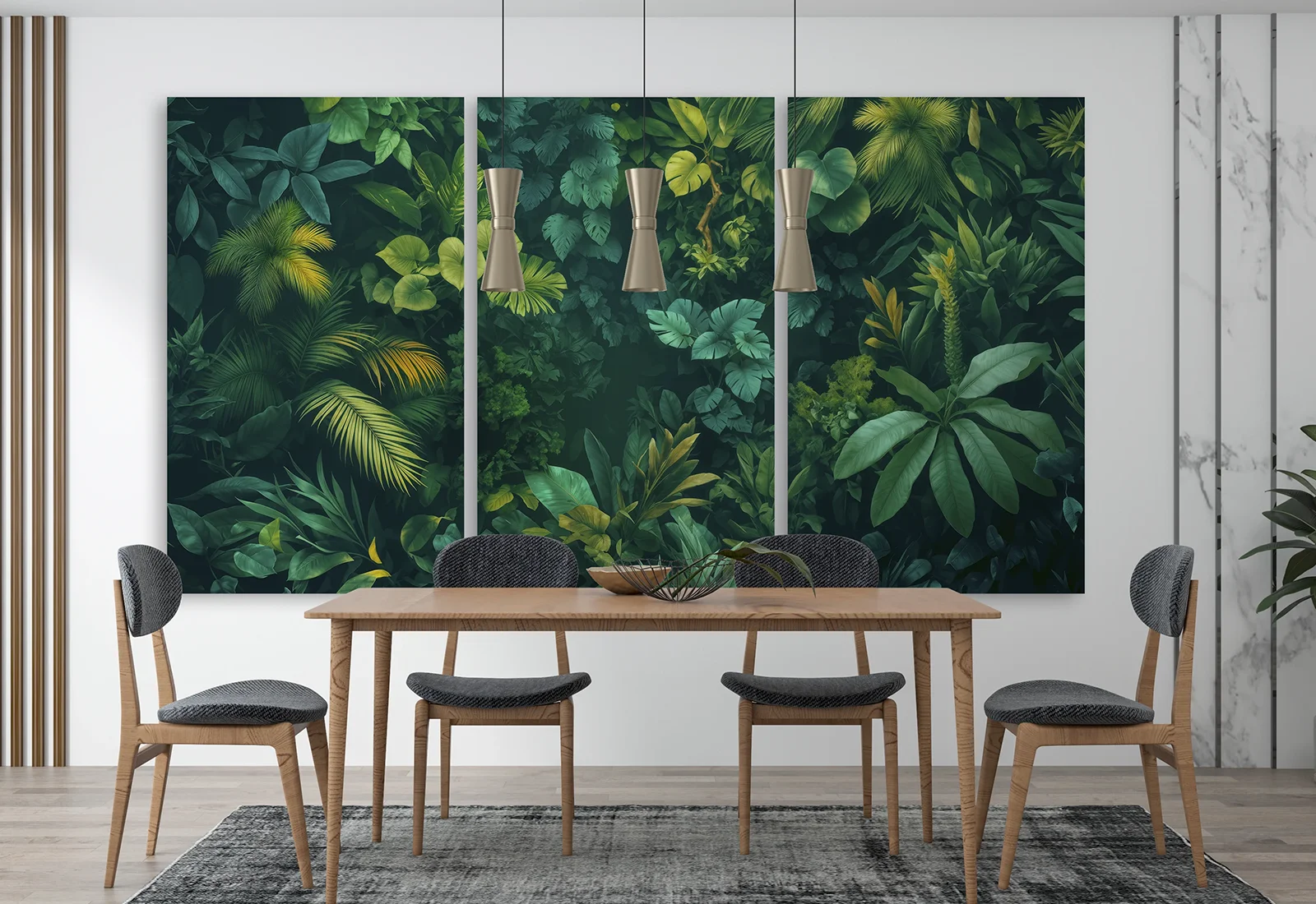 Я выбрал эту модульную картину с густыми тропическими листьями за её насыщенность и эффект глубины. Тёмно-зелёные оттенки создают ощущение настоящих джунглей, где каждая деталь выглядит живой и объёмной.