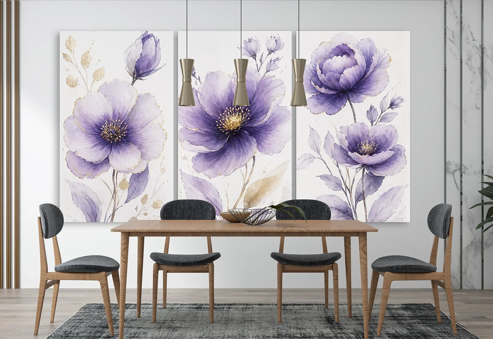 ✅ Модульная картина цветы фиолетовые ✓ Акварельные линии и чёткая печать на холсте 🚚 Доставка по Кишинёву и Молдове ⭐ картина фиолетовые цветы - Art-Design.md