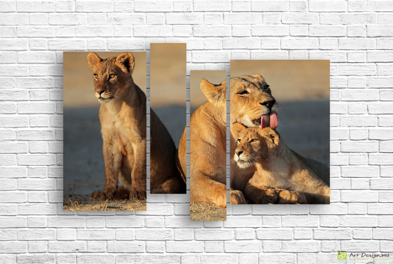 ✅ Картина модульная с львицей и львятами. ✓ Фото на холсте Кишинёв. Тёплые оттенки саванны и дикой природы. 🚚 Доставка по Молдове. ⭐ Печать на Art-Design.md