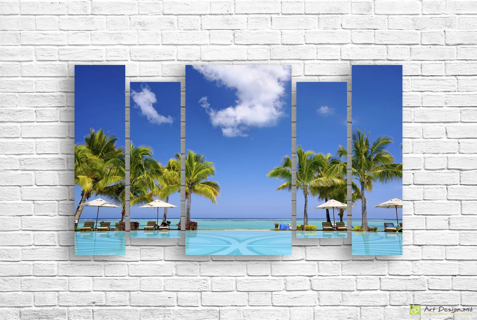 ✅ Модульная картина с бирюзовым бассейном и тропическими пальмами. ✓ Печать фото на холсте в Кишинёве. 🚚 Доставка по Кишиневу. ⭐Картины отдых - Art-Design.md