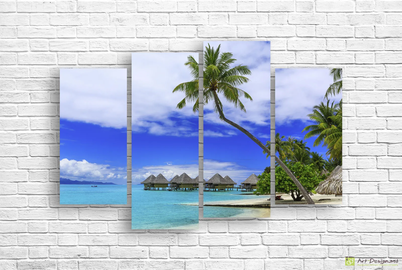 ✅ Модульная картина с виллами на сваях у подножия гор. ✓ Печать фото на холсте в Кишинёве. 🚚 Доставка по Кишиневу и Молдове. ⭐Экзотические картины - Art-Design