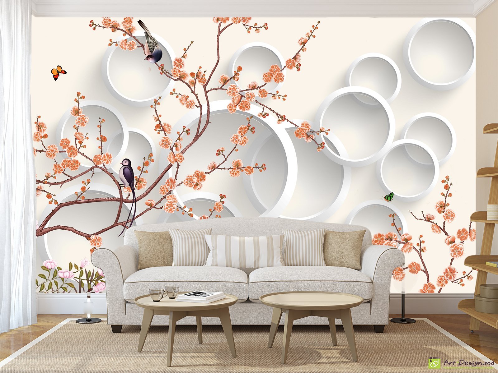 ✅ Fototapet cu efect 3D - Pițigoi pe o creangă. ✓ Tapet pentru decorarea stilată a pereților în interior. 🚚 Livrare în Chișinău și Moldova. ⭐ Tapete in Chisinau - Art-Design.md