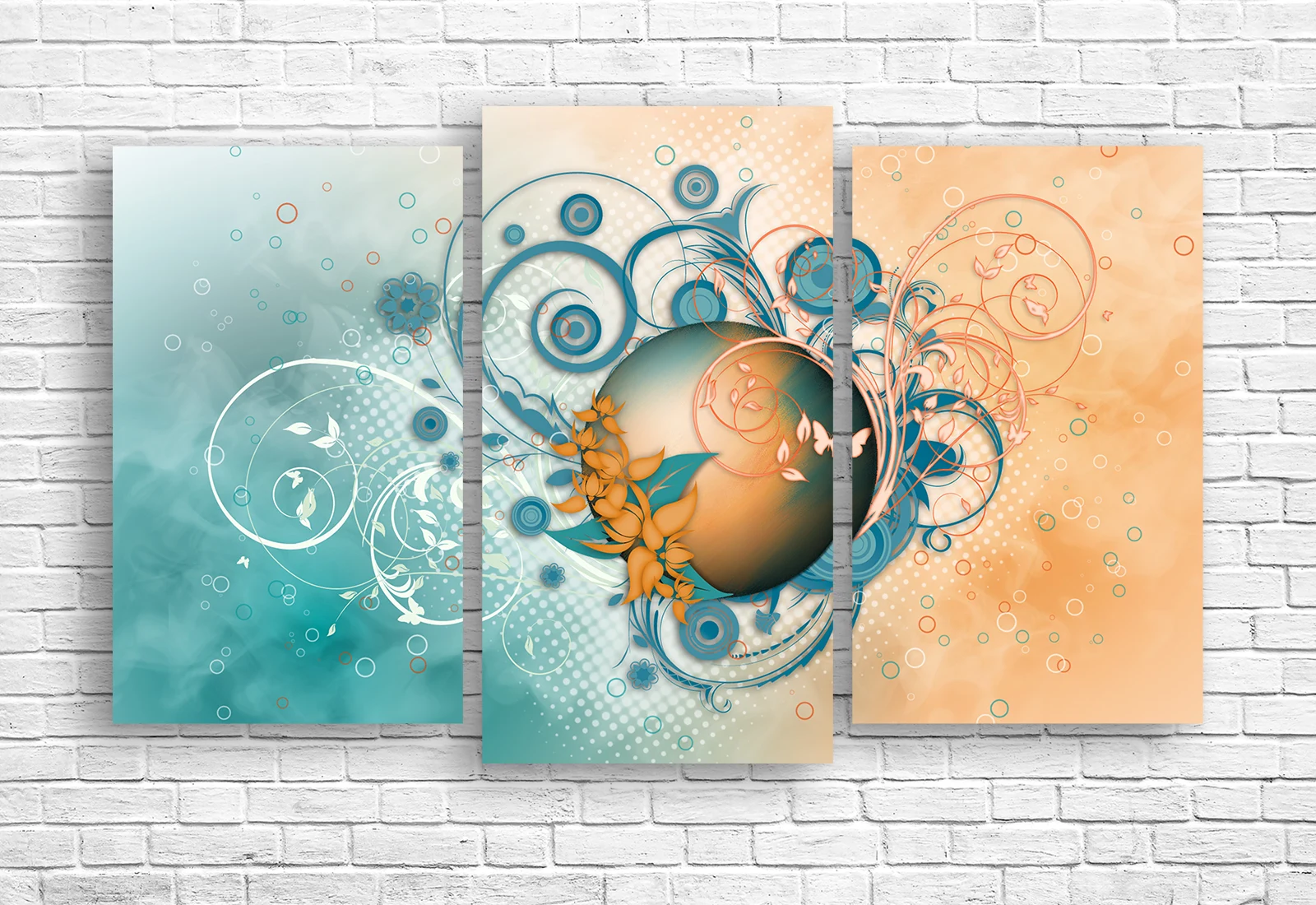 Tabloul modular „Armonia formelor” reprezintă o compoziție abstractă delicată, realizată din linii fluide, elemente decorative circulare și o paletă echilibrată de culori pastelate.