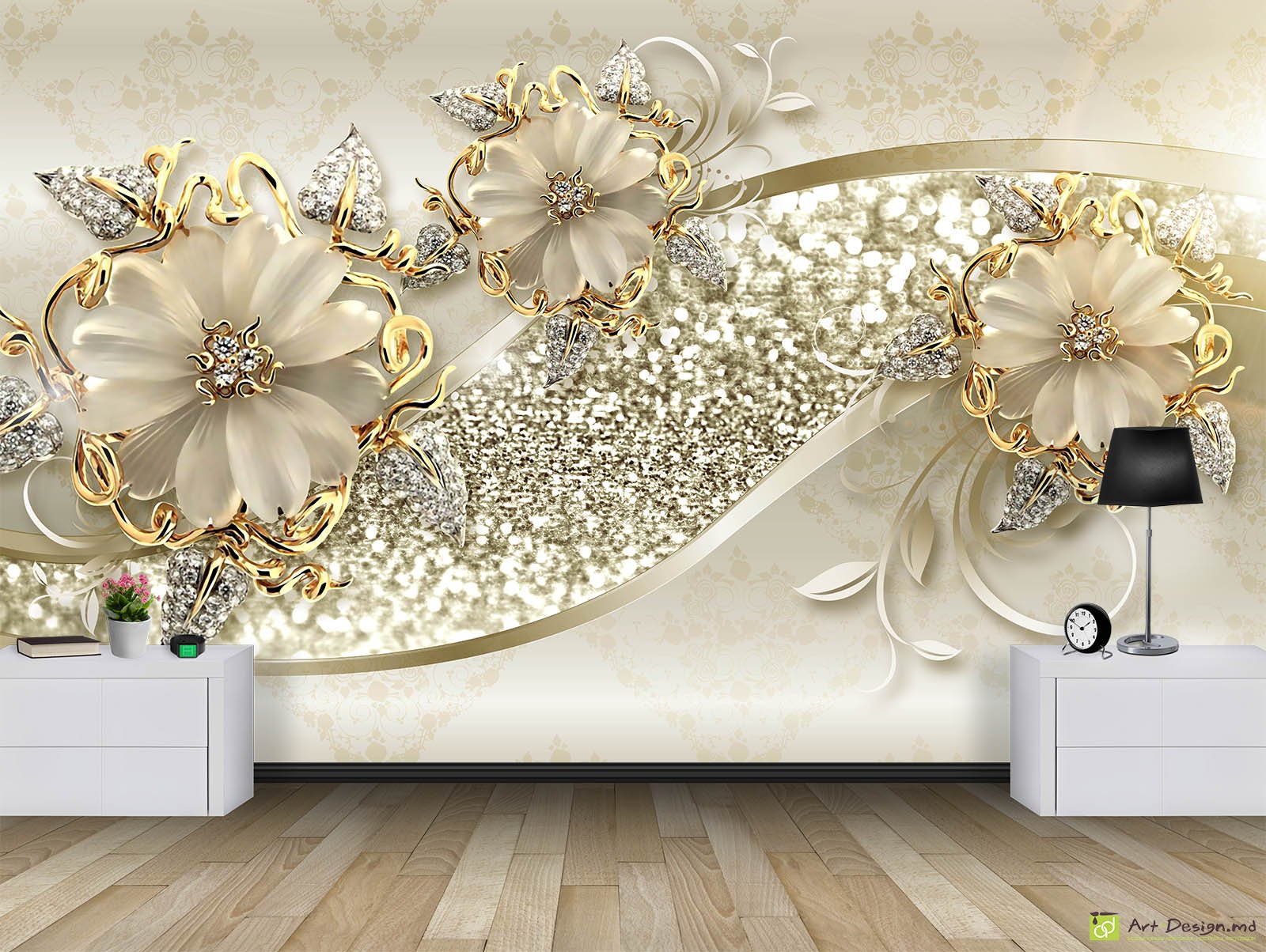 ✅ Fototapet la comandă, Digital - Grafică, Flori pe fundal de aur. ✓ Tapet pentru decorarea stilată a pereților în interior. 🚚 Livrare în Chișinău și Moldova. ⭐ Tapete in Chisinau - Art-Design.md