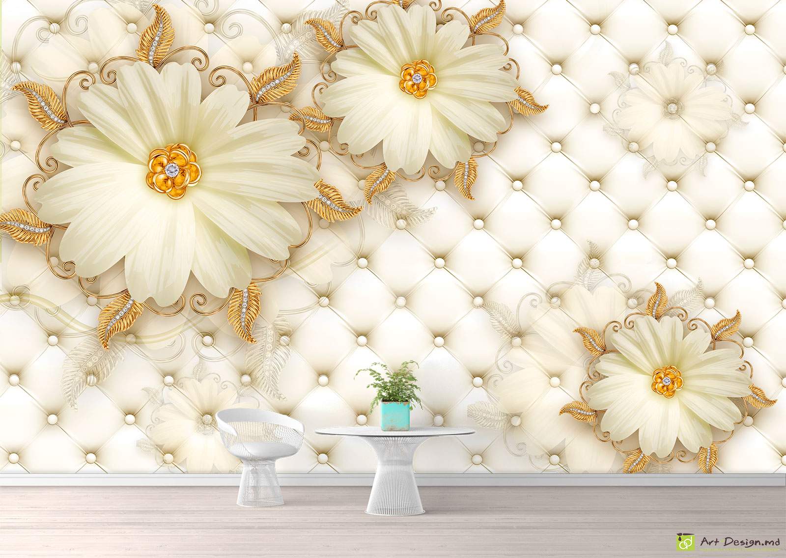 ✅ Fototapet cu efect 3D - Flori de mușețel pe fundalul unei piele. ✓ Tapet pentru decorarea stilată a pereților în interior. 🚚 Livrare în Chișinău și Moldova. ⭐ Tapete in Chisinau - Art-Design.md