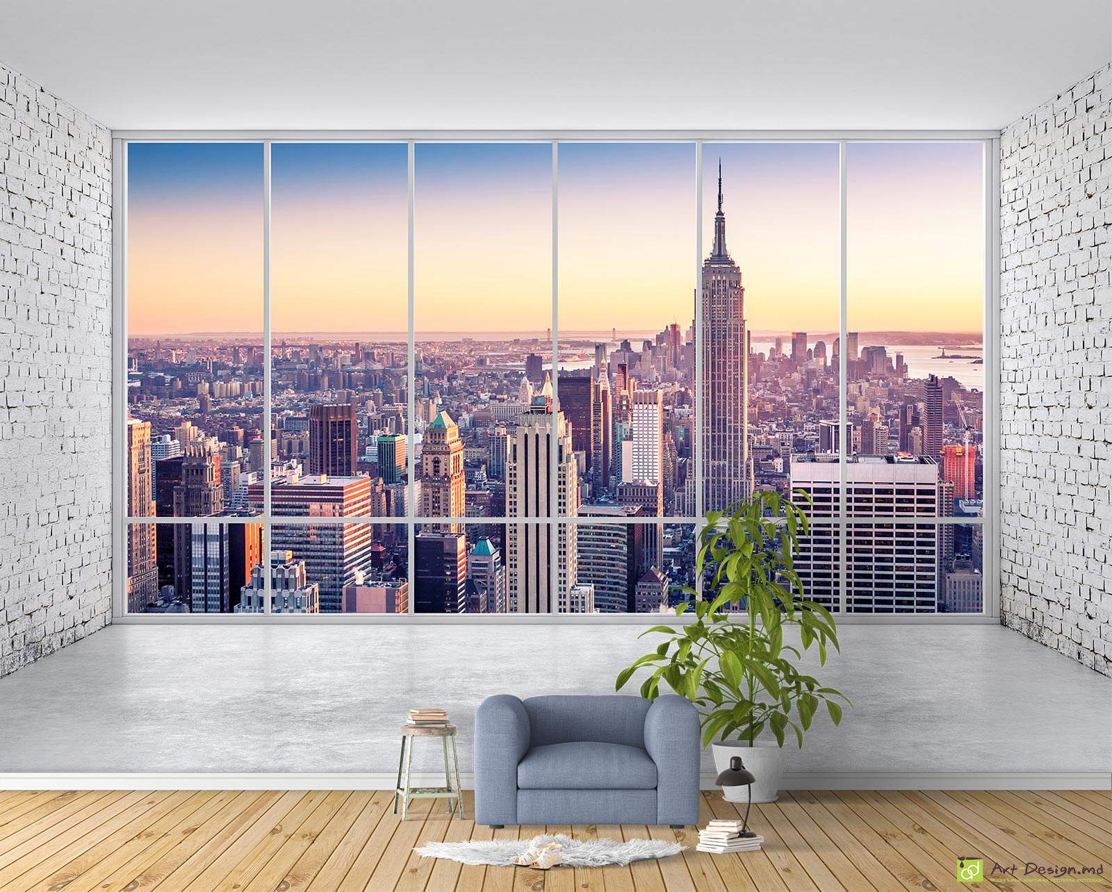 ✅ Fototapet la comanda - Privirea spre oraș și peretele de cărămizi. ✓ Tapet pentru decorarea stilată a pereților în interior. 🚚 Livrare în Chișinău și Moldova. ⭐ Tapete in Chisinau - Art-Design.md