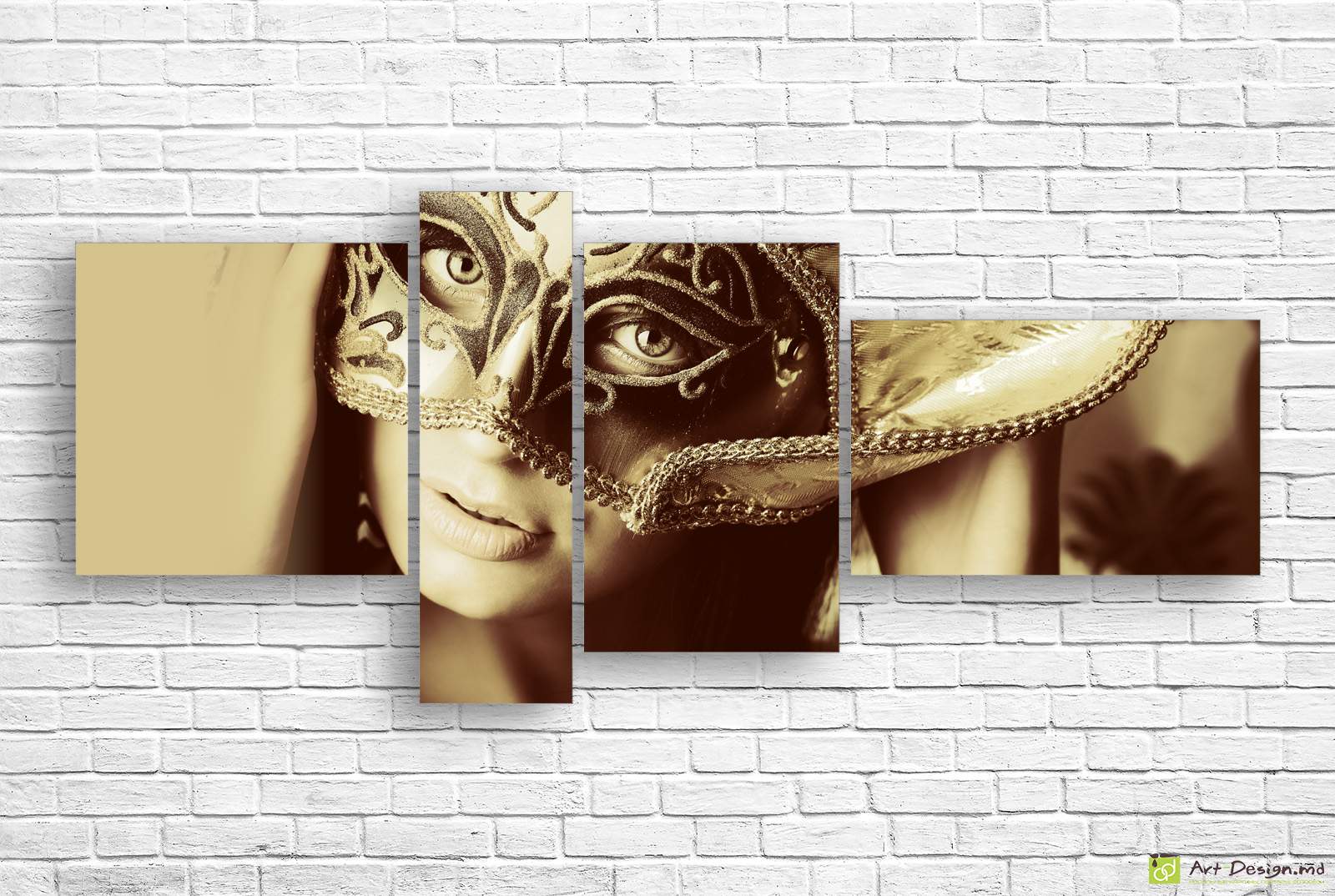 ✅ Tablou modular cu portret feminin în mască venețiană. ✓ Print pe pânză Chișinău pentru decor rafinat. 🚚 Livrare în Moldova. ⭐ Tablouri pe pânză - Art-Design.