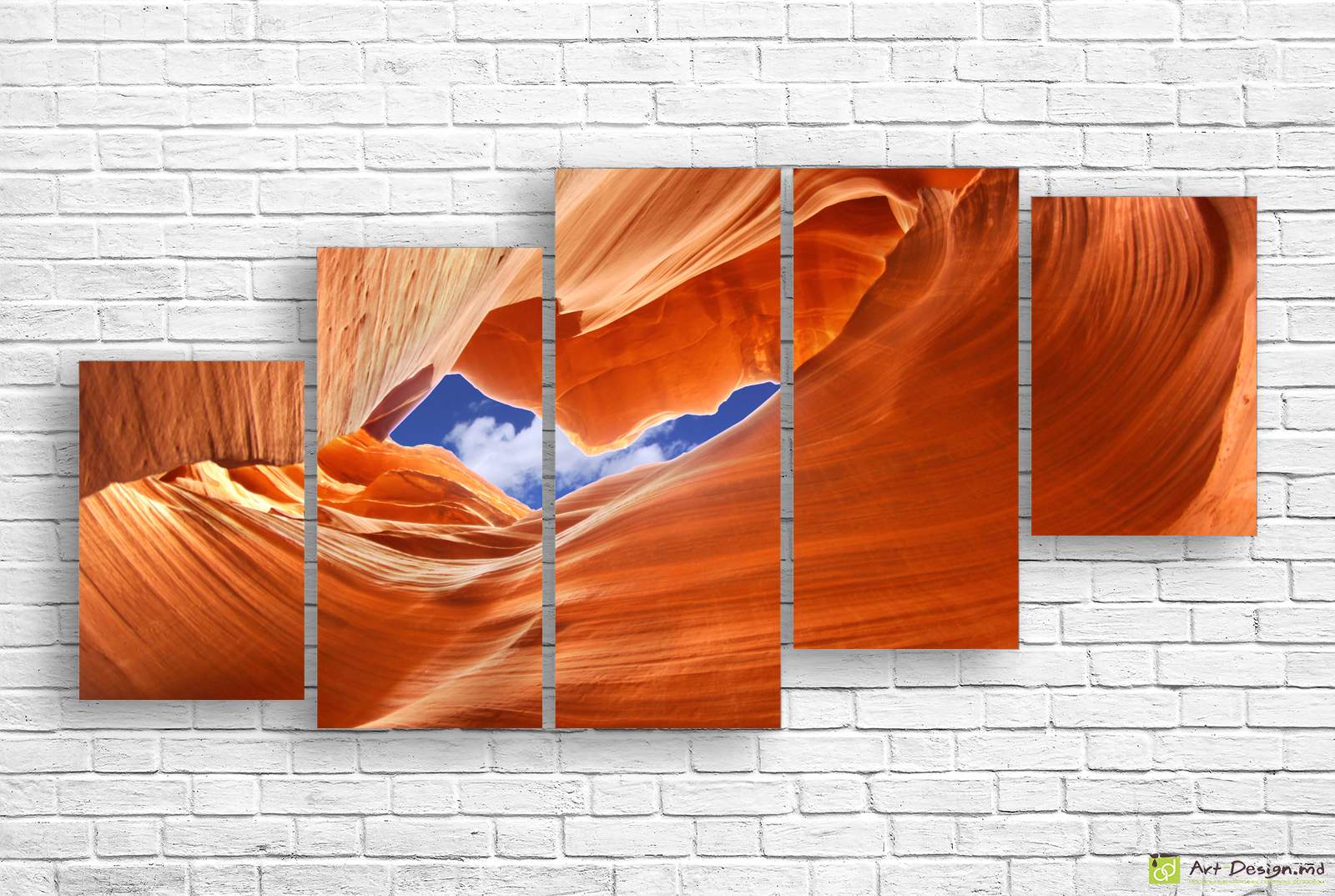 Compoziția formată din cinci piese de înălțimi diferite oferă o profunzime vizuală deosebită, transformând orice perete într-o fereastră deschisă către minunile geologice ale deșertului. Producem aceste decorațiuni în Chișinău la cele mai înalte standarde, utilizând pânză de bumbac de calitate superioară și șasiuri rezistente din lemn masiv.