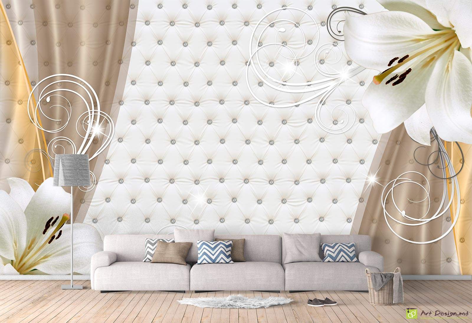 ✅ Fototapet cu efect 3D - Crini pe fundal deschis cu bucle. ✓ Tapet pentru decorarea stilată a pereților în interior. 🚚 Livrare în Chișinău și Moldova. ⭐ Tapete in Chisinau - Art-Design.md