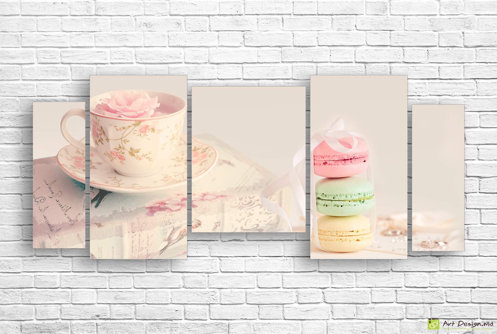 Tablou modular ceai și macarons este un tablou modular pe pânză conceput pentru decorarea interioarelor moderne. Compoziția din mai multe părți creează profunzime și oferă un efect vizual deosebit.