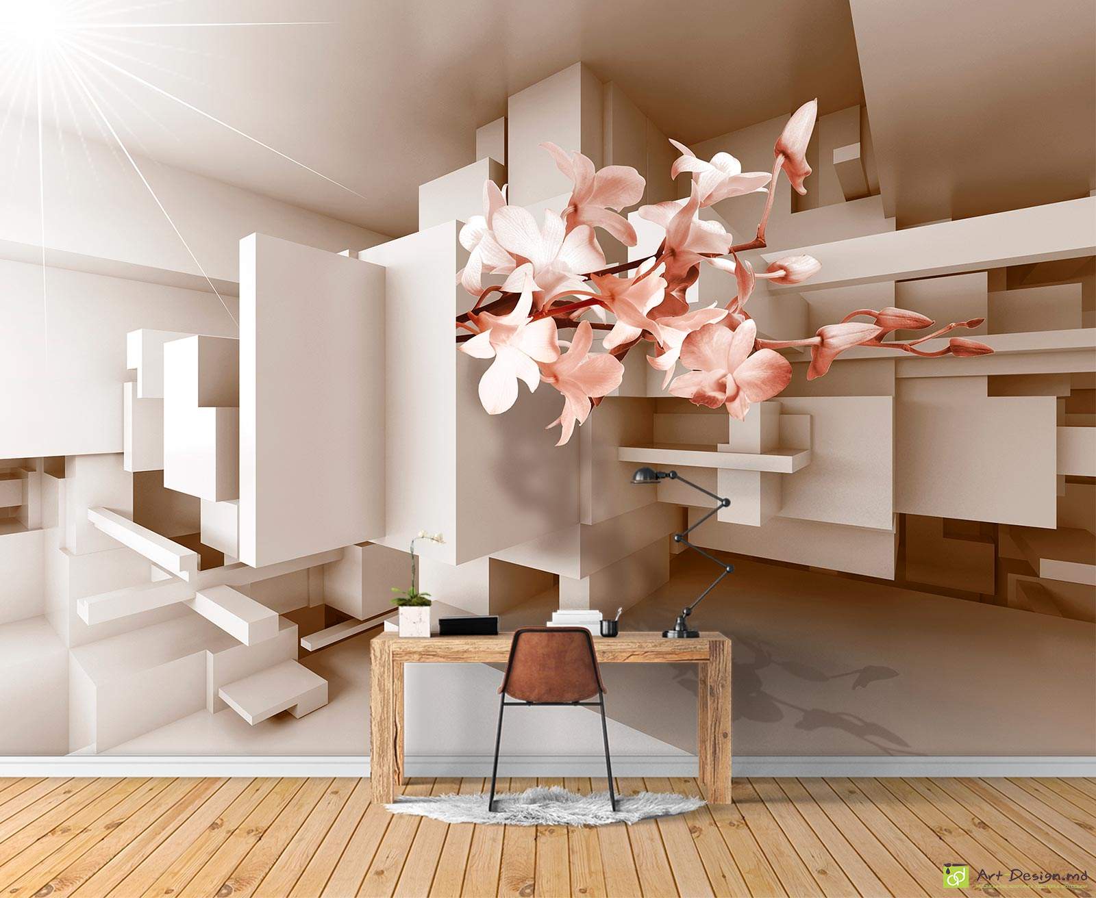 ✅ Fototapet cu efect 3D - Orhidee și fundal 3D. ✓ Tapet pentru decorarea stilată a pereților în interior. 🚚 Livrare în Chișinău și Moldova. ⭐ Tapete in Chisinau - Art-Design.md