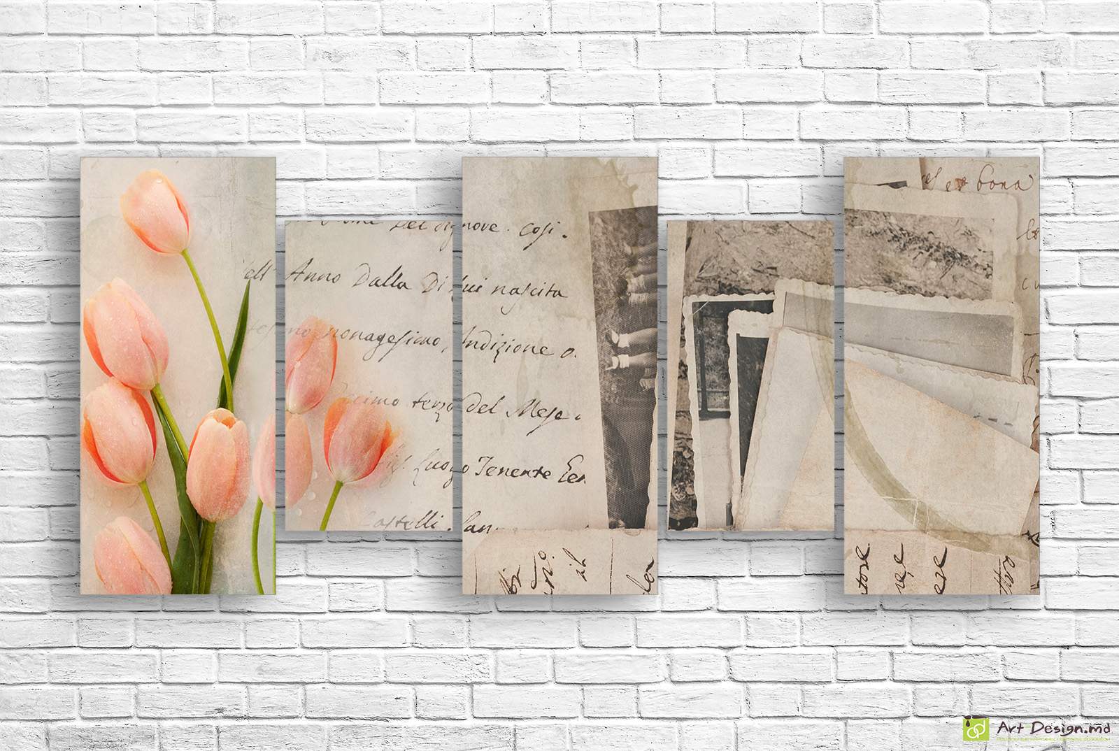 ✅ Imagine modulară - Retro. Amintiri si lalele_3. ✓ Tablou modular pe pânză pentru interior modern. 🚚 Livrare în Chișinău și Moldova. ⭐ Tablouri md - Art-Design.md