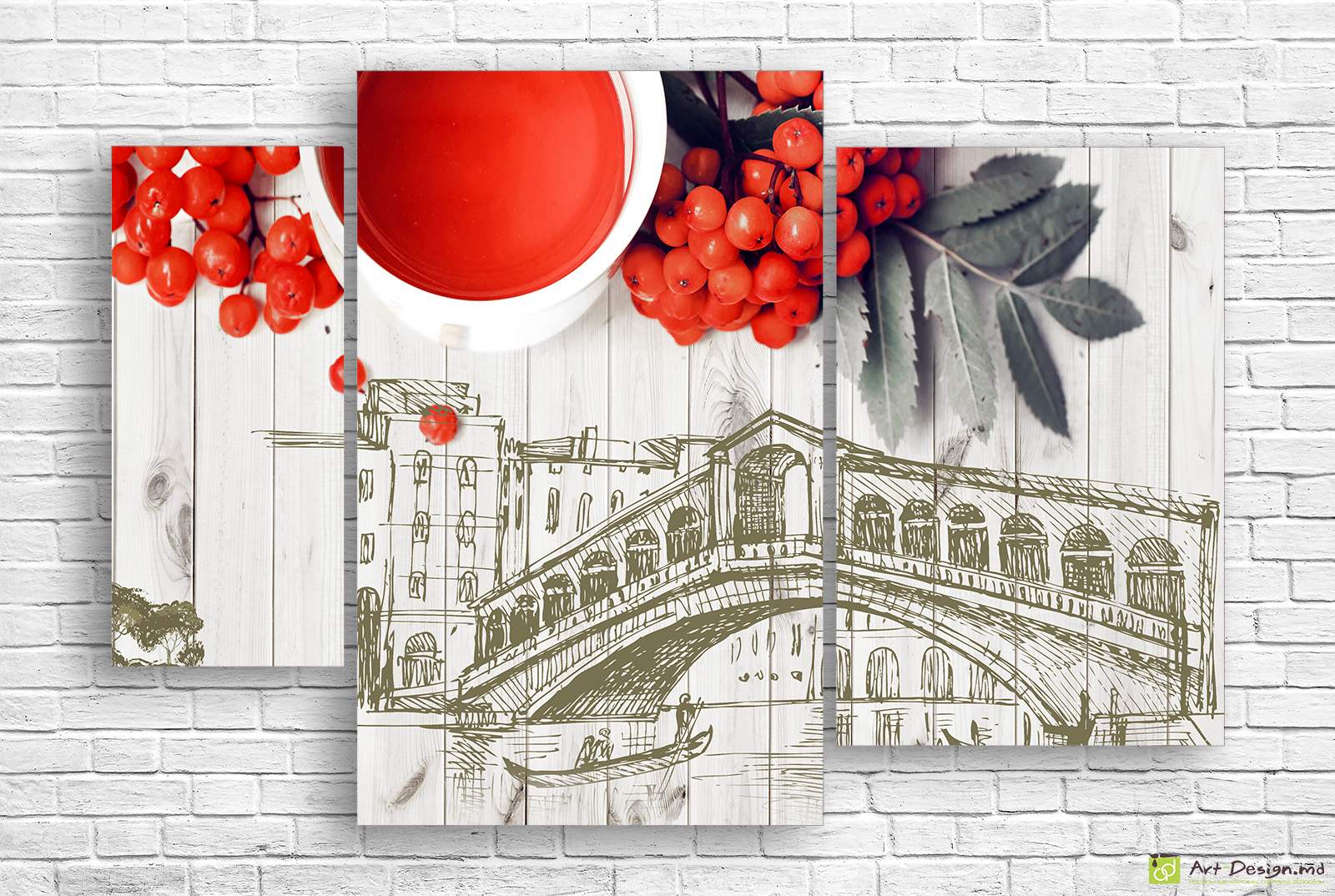 ✅ Tablou multicanvas - Scoruș roșu pe fundal desenat_4. ✓ Tablou modular pe pânză pentru interior modern. 🚚 Livrare în Chișinău și Moldova. ⭐ Tablouri md - Art-Design.md