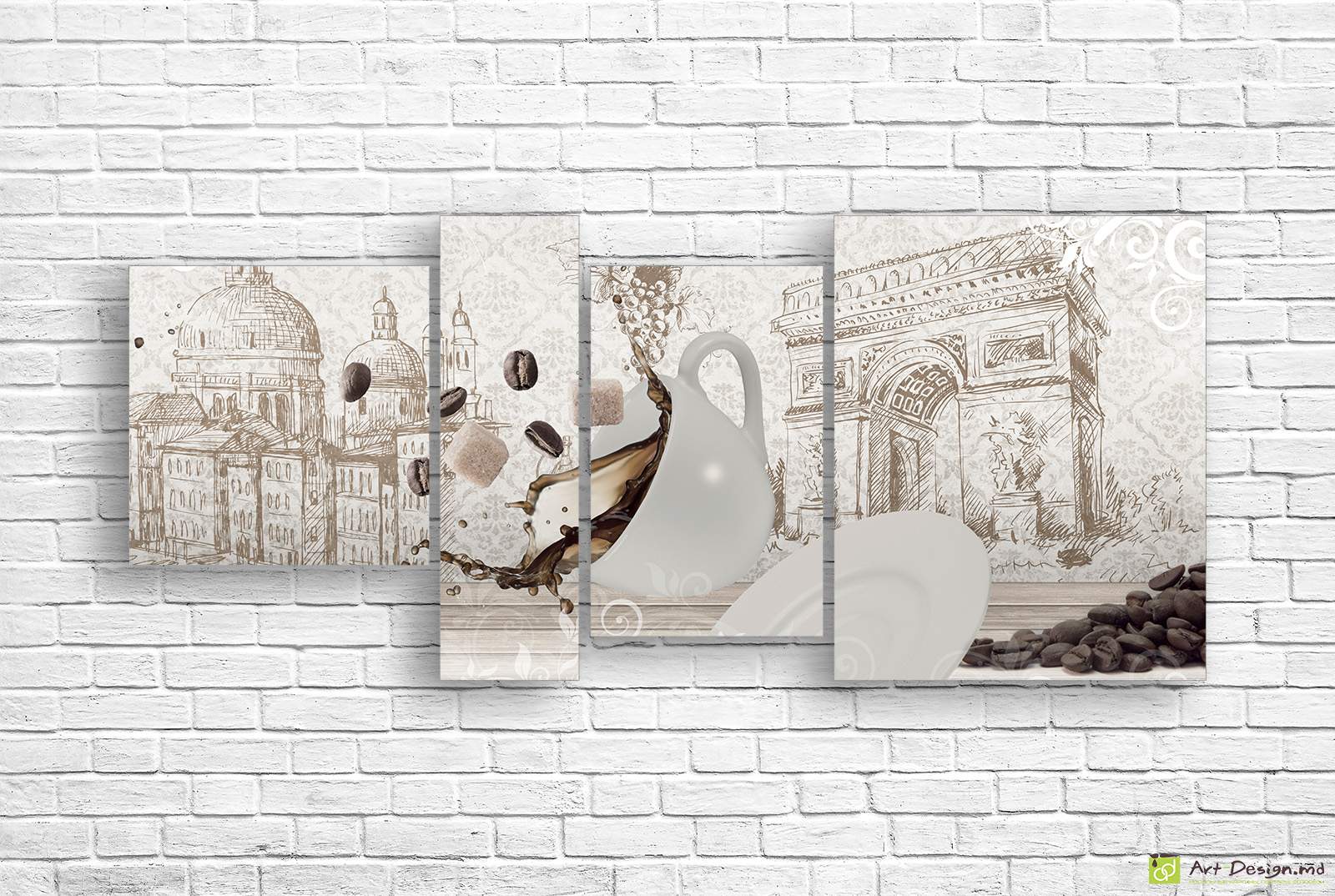 ✅ Imaginea Modulara - O ceașca de cafea pe fundalul unui desen. ✓ Tablou modular pe pânză pentru interior modern. 🚚 Livrare în Chișinău și Moldova. ⭐ Tablouri md - Art-Design.md