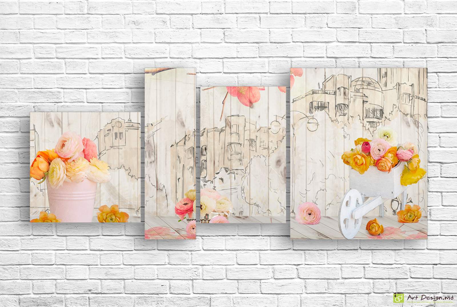 ✅ Tablou multicanvas - Bujori pe un fundal desen. ✓ Tablou modular pe pânză pentru interior modern. 🚚 Livrare în Chișinău și Moldova. ⭐ Tablouri md - Art-Design.md