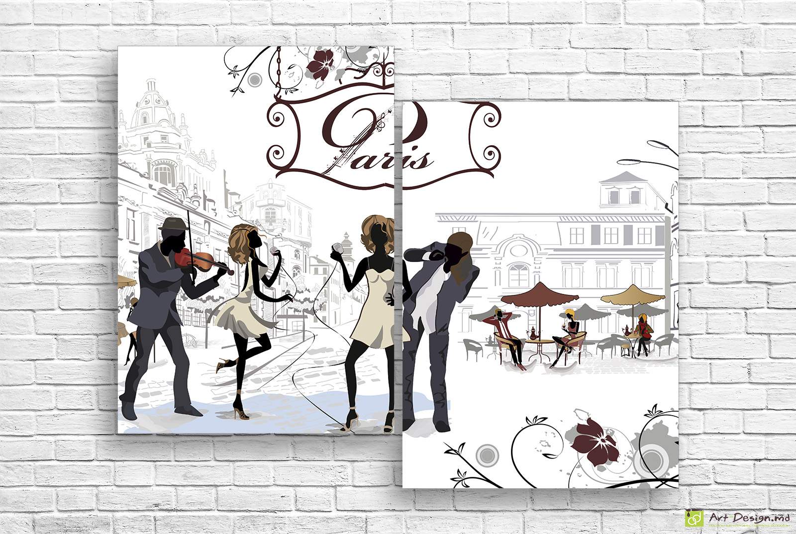 Compozitia formata din doua piese verticale imbina armonios elementele grafice moderne cu o tema clasica si romantica, transformand orice perete intr-o scena vibranta ce emana sunetul muzicii si parfumul diminetilor pariziene. Producem aceste decoratiuni in Chisinau la cele mai inalte standarde, utilizand panza de bumbac de calitate superioara si sasiuri rezistente din lemn masiv. Tehnologia de imprimare de ultima generatie asigura finetea fiecarui contur si luminozitatea culorilor neutre, oferind o experienta vizuala plina de stil in incapere.