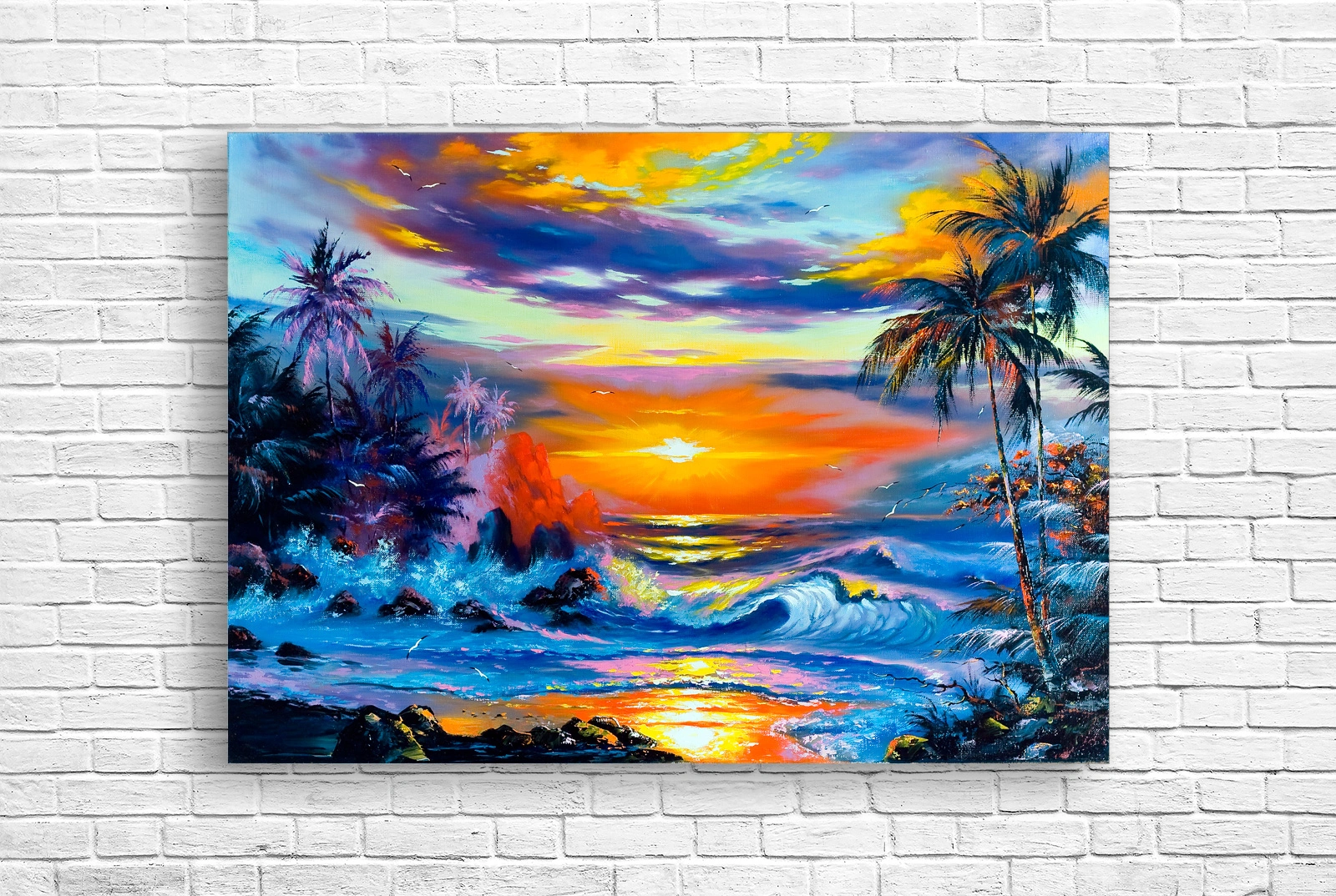 Acest Tablou cu imaginea unui apus de soare asupra mării, cu nuanțe vibrante ale cerului și valurilor, va adăuga un accent minunat în orice interior. El va aduce o atmosferă de liniște și armonie, ideal pentru dormitor sau living, oferind o senzație de relaxare și pace.