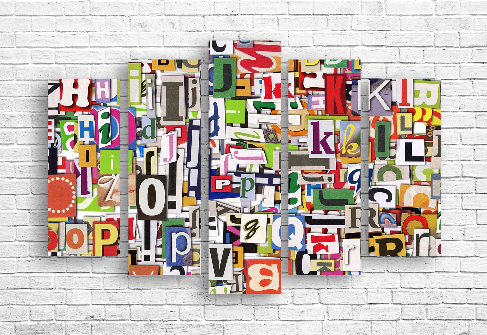 Tabloul modular „Colaj tipografic” este o lucrare modernă și expresivă, construită din litere, fonturi și fragmente grafice colorate. Compoziția amintește de un colaj artistic tipografic, plin de ritm vizual și energie creativă. Diversitatea formelor și culorilor creează un impact vizual puternic, transformând tabloul într-un punct central al încăperii.