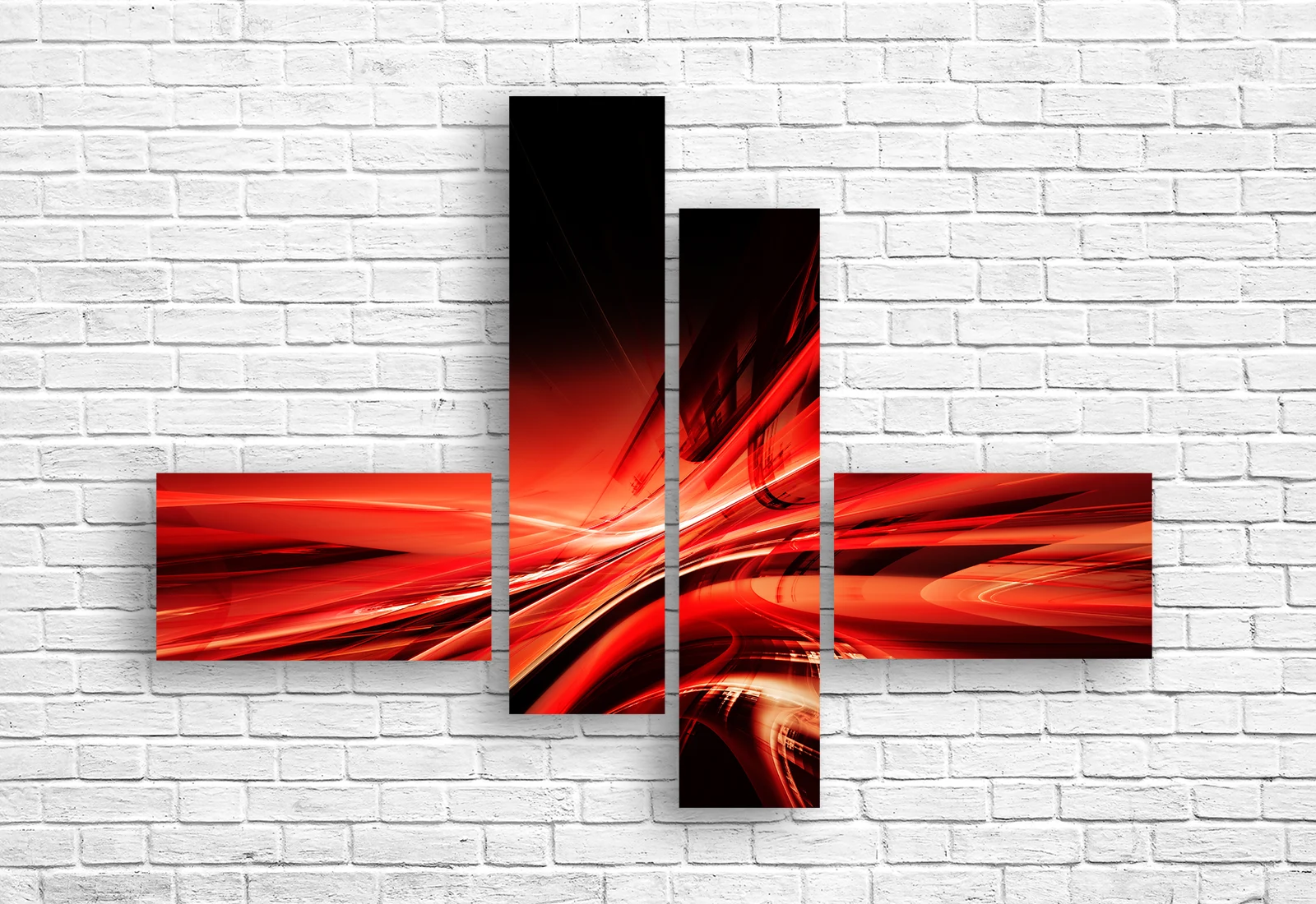 Tabloul modular „Energie roșie” este o compoziție abstractă puternică, ce transmite viteză, mișcare și intensitate. Liniile roșii dinamice pe fundal negru creează un efect vizual energic, transformând spațiul într-unul expresiv și modern.