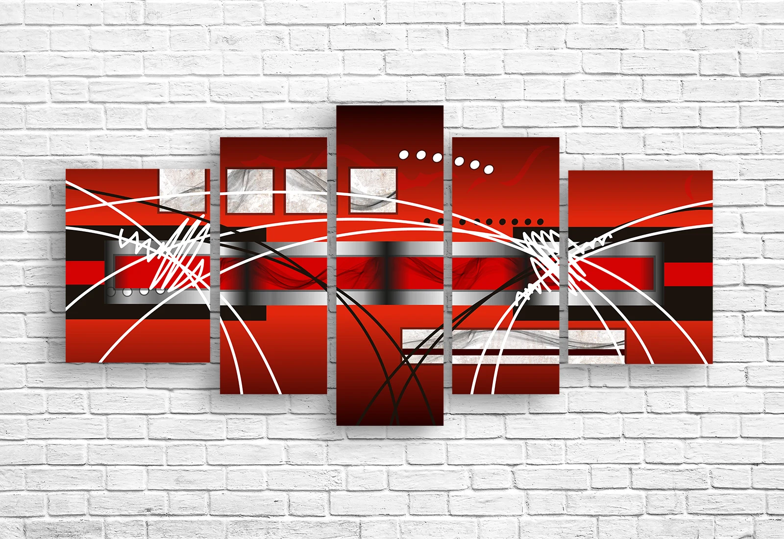 Tabloul modular „Energia roșie a abstracției” reprezintă o expresie puternică a dinamismului și a emoției moderne. Jocul intens al nuanțelor de roșu, combinat cu linii fluide și contraste profunde, creează o compoziție vibrantă, plină de mișcare și personalitate.