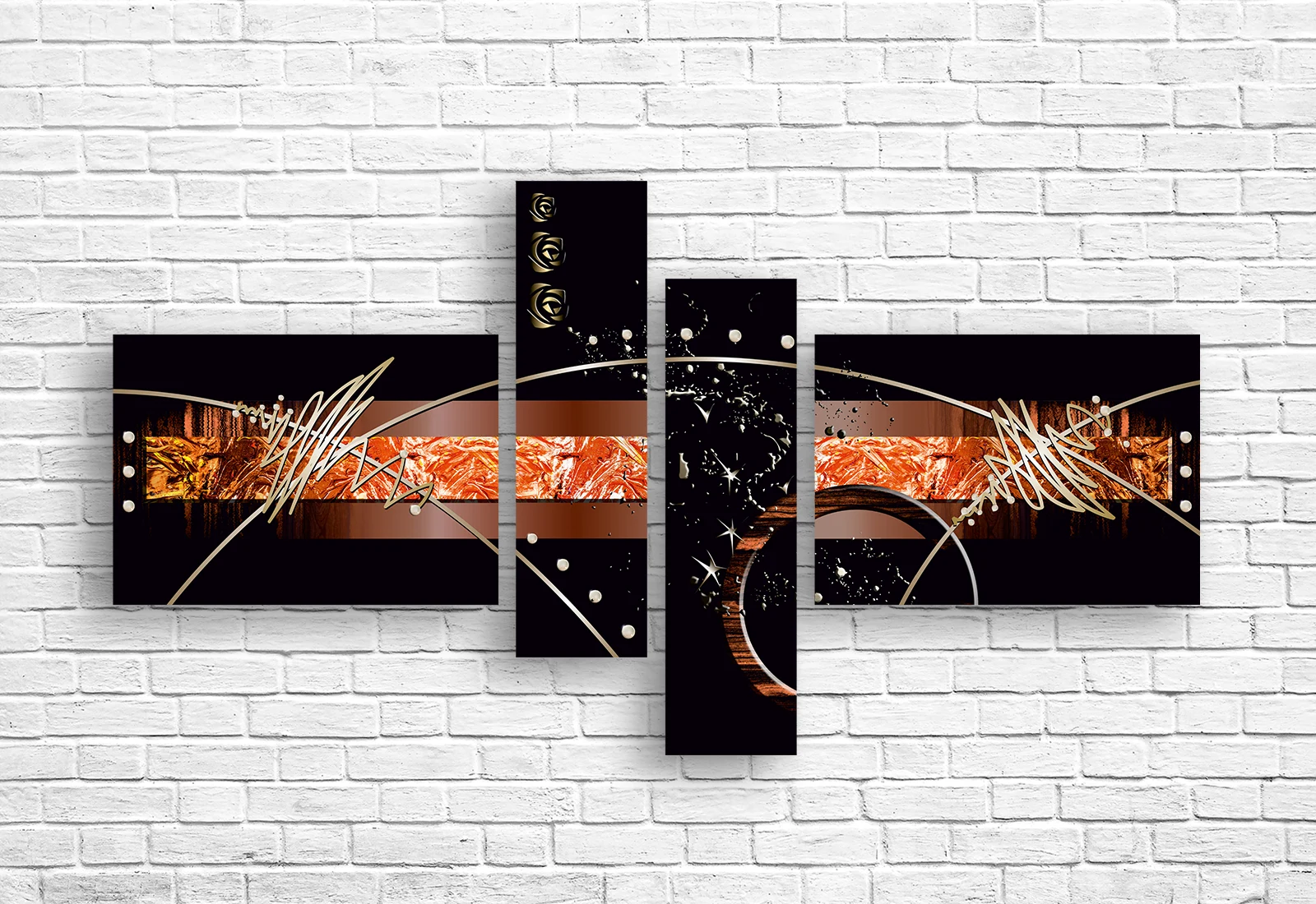 Accentele metalice oferă profunzime vizuală și rafinament, iar structura modulară transformă tabloul într-un element decorativ central al încăperii. Este ideal pentru living, birou, dormitor sau spații comerciale moderne.