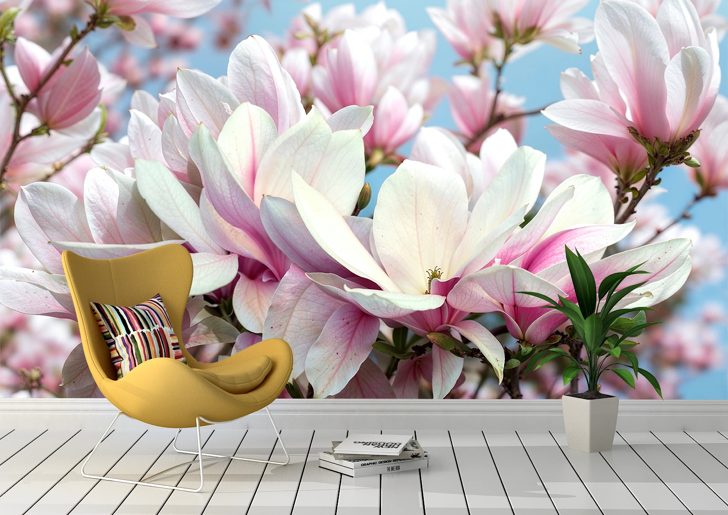 Fototapetul cu flori roz de magnolie aduce un aer proaspăt și romantic. Ideal pentru living, dormitor sau birou, oferind eleganță și rafinament decorului. Dacă ești în căutarea unui tapet de primăvară pentru a aduce natura în interiorul casei tale, optează pentru un tapet cu magnolie sau un tapet floral. Acestea sunt perfecte pentru a crea un ambient plăcut și relaxant.