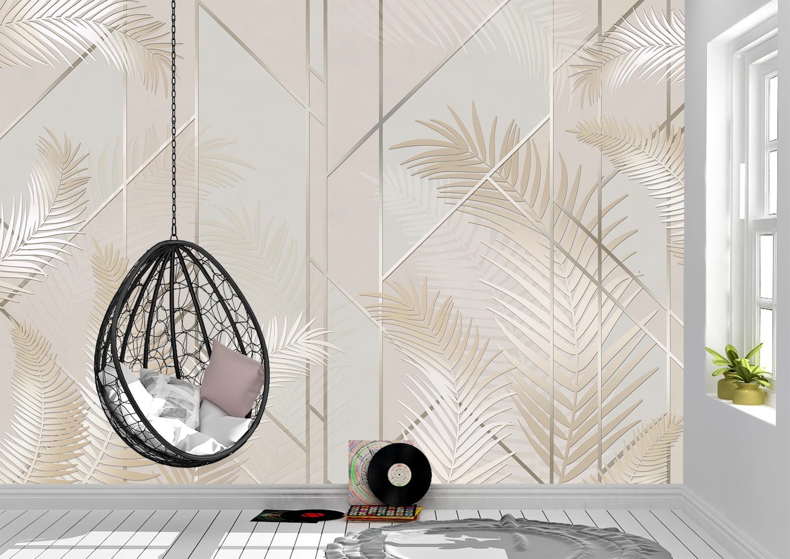 ✅ Fototapet cu frunze de palmier în tonuri bej. ✓ Soluție elegantă pentru living, dormitor sau birou. 🚚 Livrare rapidă în Chișinău și Moldova. ⭐ Art-Design.md