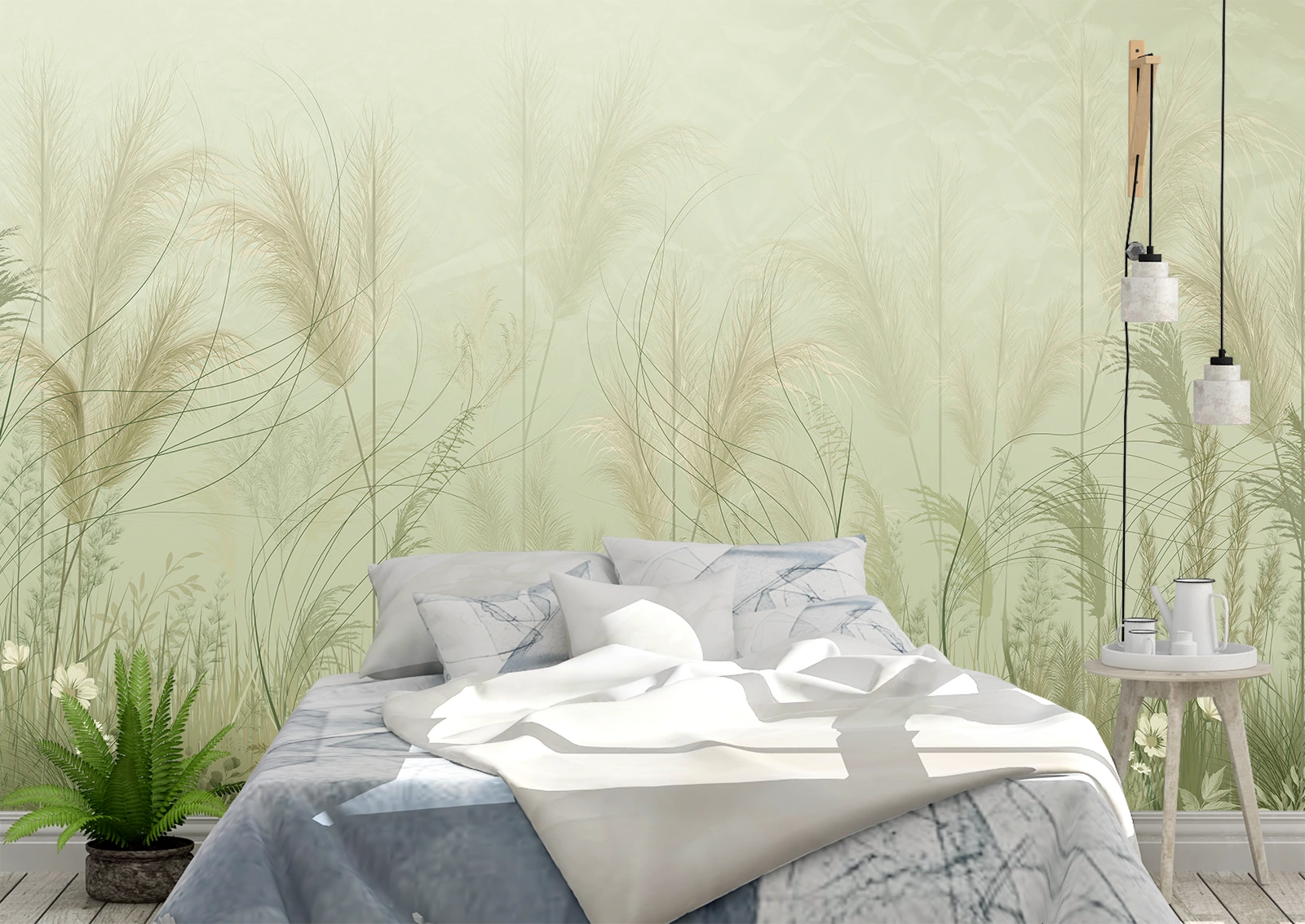 ✅ Fototapet verde pastel cu ierburi decorative. ✓ O alegere ideală pentru dormitor sau living modern. 🚚 Livrare Chișinău și Moldova. ⭐ Art-Design.md