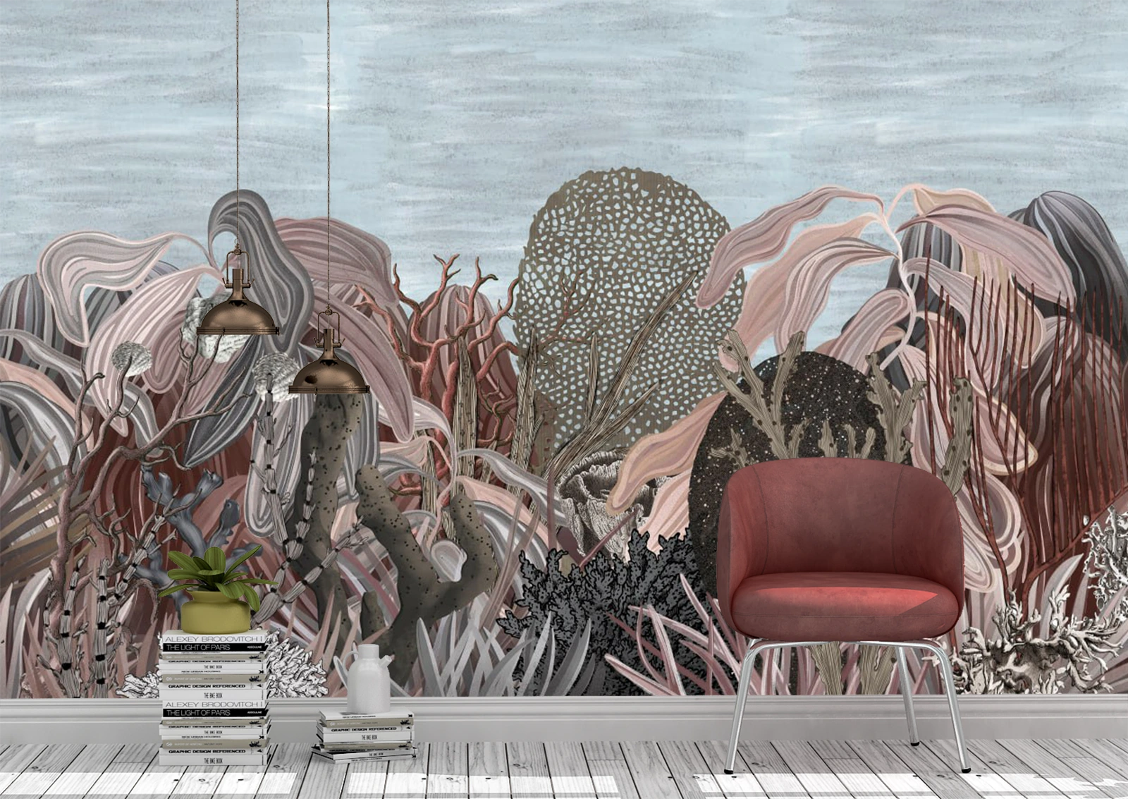 Fototapet „Grădina subacvatică” combină forme organice și nuanțe moderne, creând un efect vizual spectaculos. Detaliile florale abstracte și tonurile calde de roz și bej adaugă rafinament și armonie. Ideal pentru living, dormitor sau birou, aducând o notă artistică spațiului.