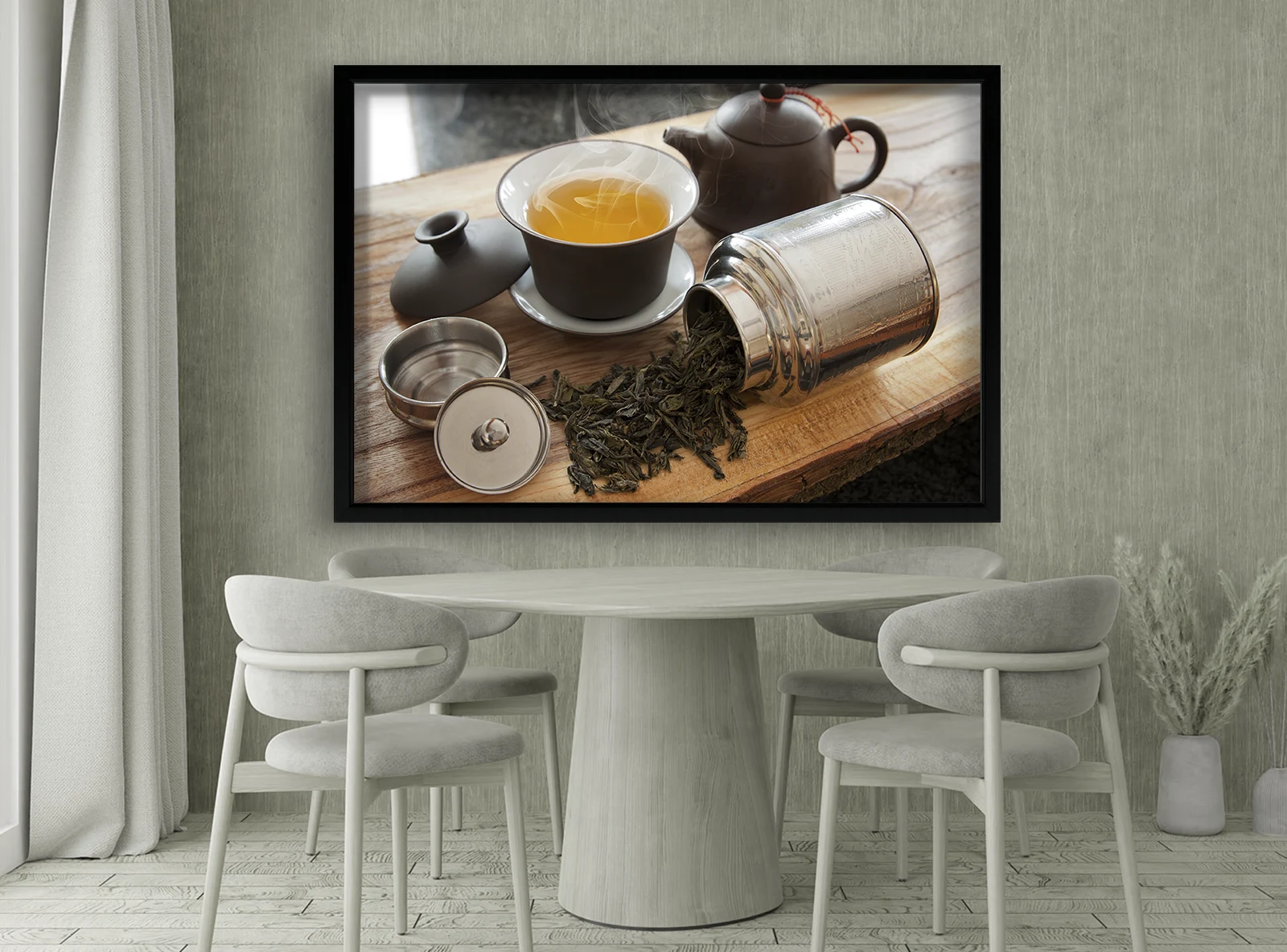 ✅ Tablou cu ceai verde în ramă neagră. ✓ Perfect pentru bucătărie sau salon de ceai. Tablouri md. 🚚 Livrare rapidă în Chișinău și Moldova. ⭐ Art-Design.md.