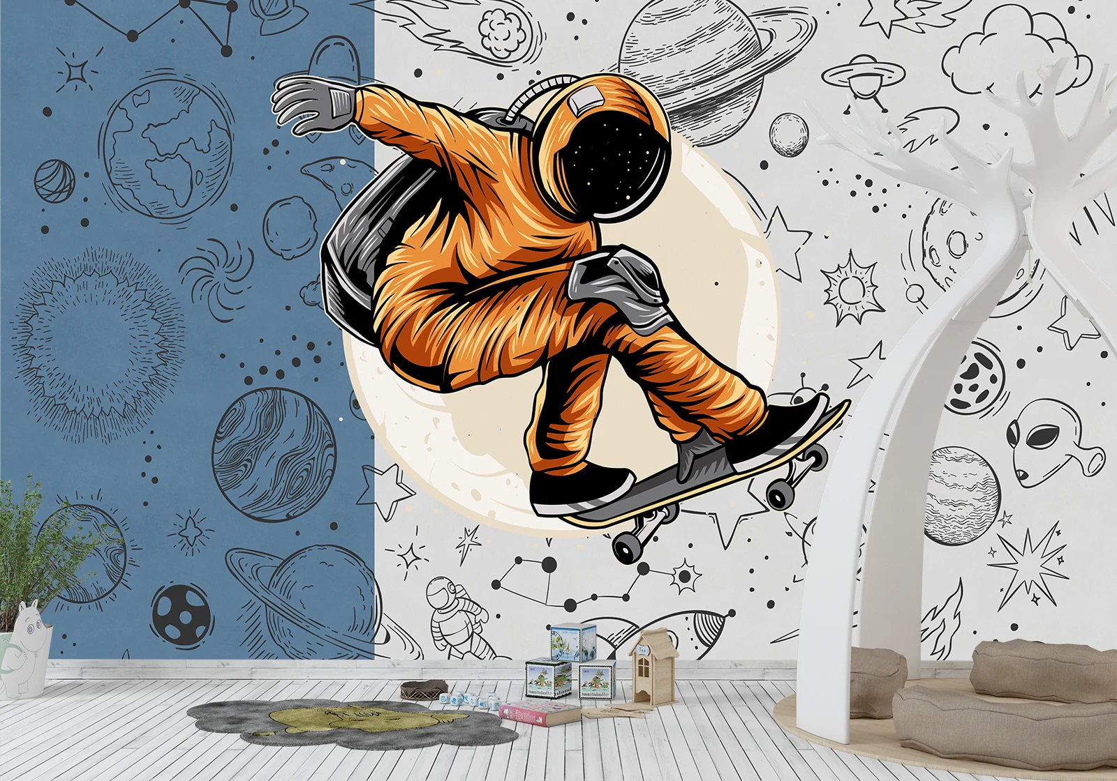 ✅ Fototapet pentru copii cu astronaut pe skateboard. ✓ Oferă energie, joacă și inspirație zilnică. 🚚 Livrare rapidă în Chișinău și Moldova. ⭐ Art-Design.md
