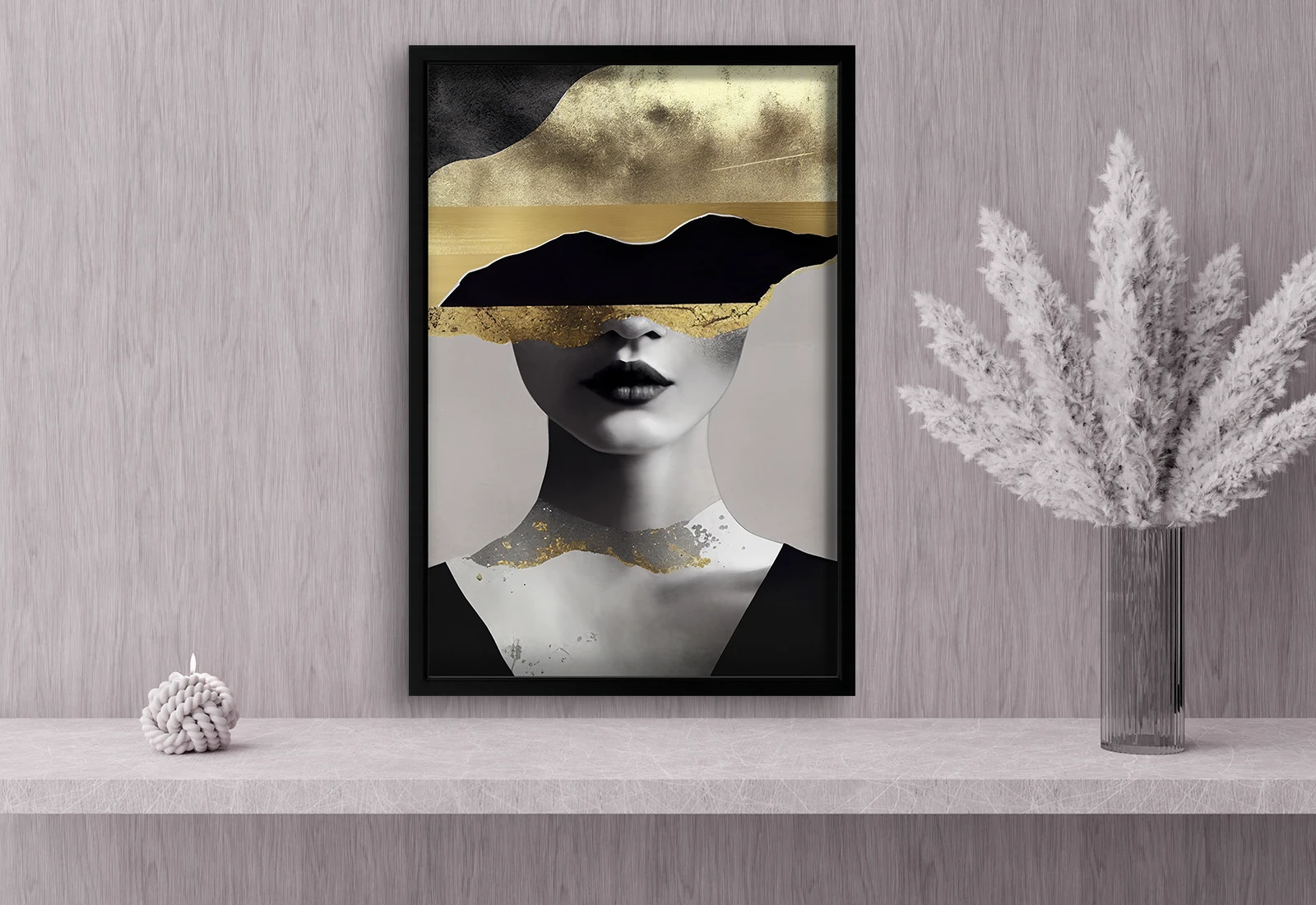 ✅ Tablou cu abstracție aurie și portret. ✓ Perfect pentru decor modern. 🚚 Livrare rapidă în Chișinău și Moldova. ⭐ tablou în ramă albă - Art-Design.md.