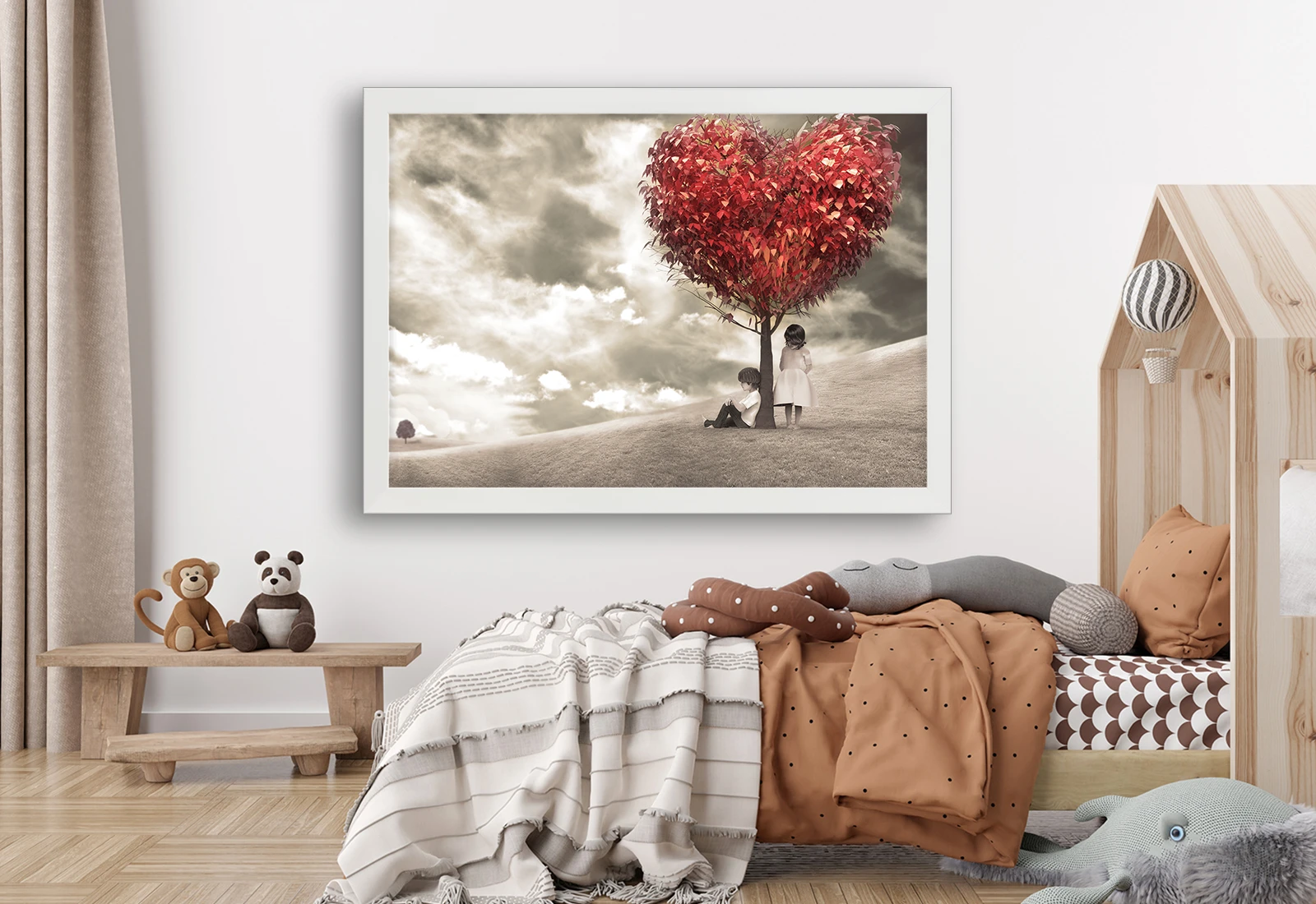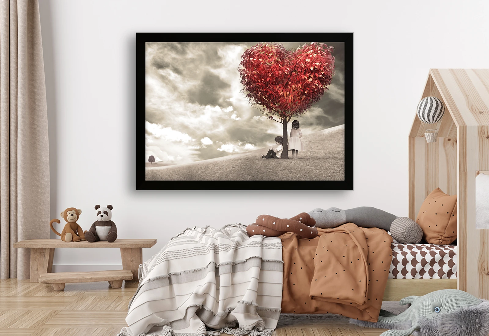 ✅ Tablouri cu ramă Chișinău cu copac în formă de inimă și copii. ✓ Decor emoțional pentru interior. 🚚 Livrare în Chișinău și Moldova. ⭐ Art-Design.md.