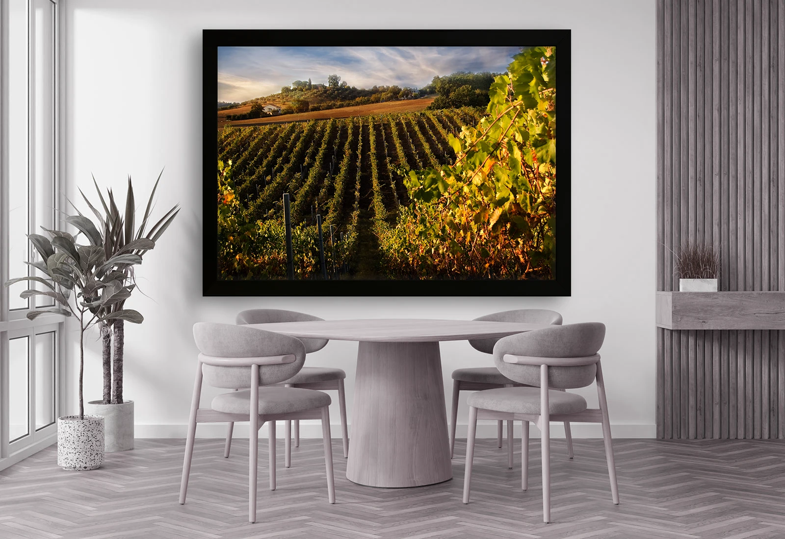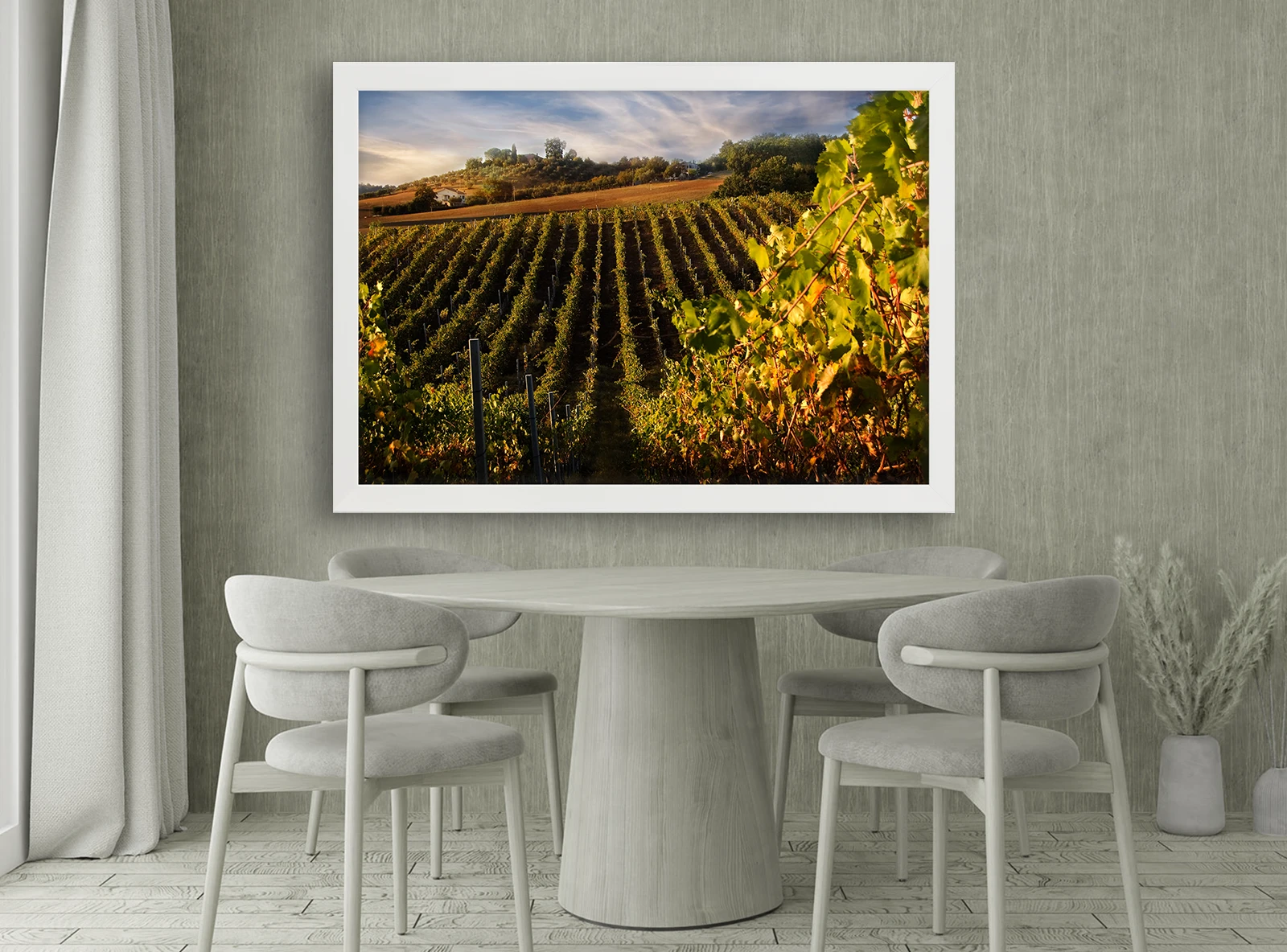 ✅ Tablouri cu ramă Chișinău cu peisaj de podgorii. ✓ Lumina caldă a apusului peste rânduri de viță-de-vie. 🚚 Livrare în Chișinău și Moldova. ⭐ Art-Design.md.