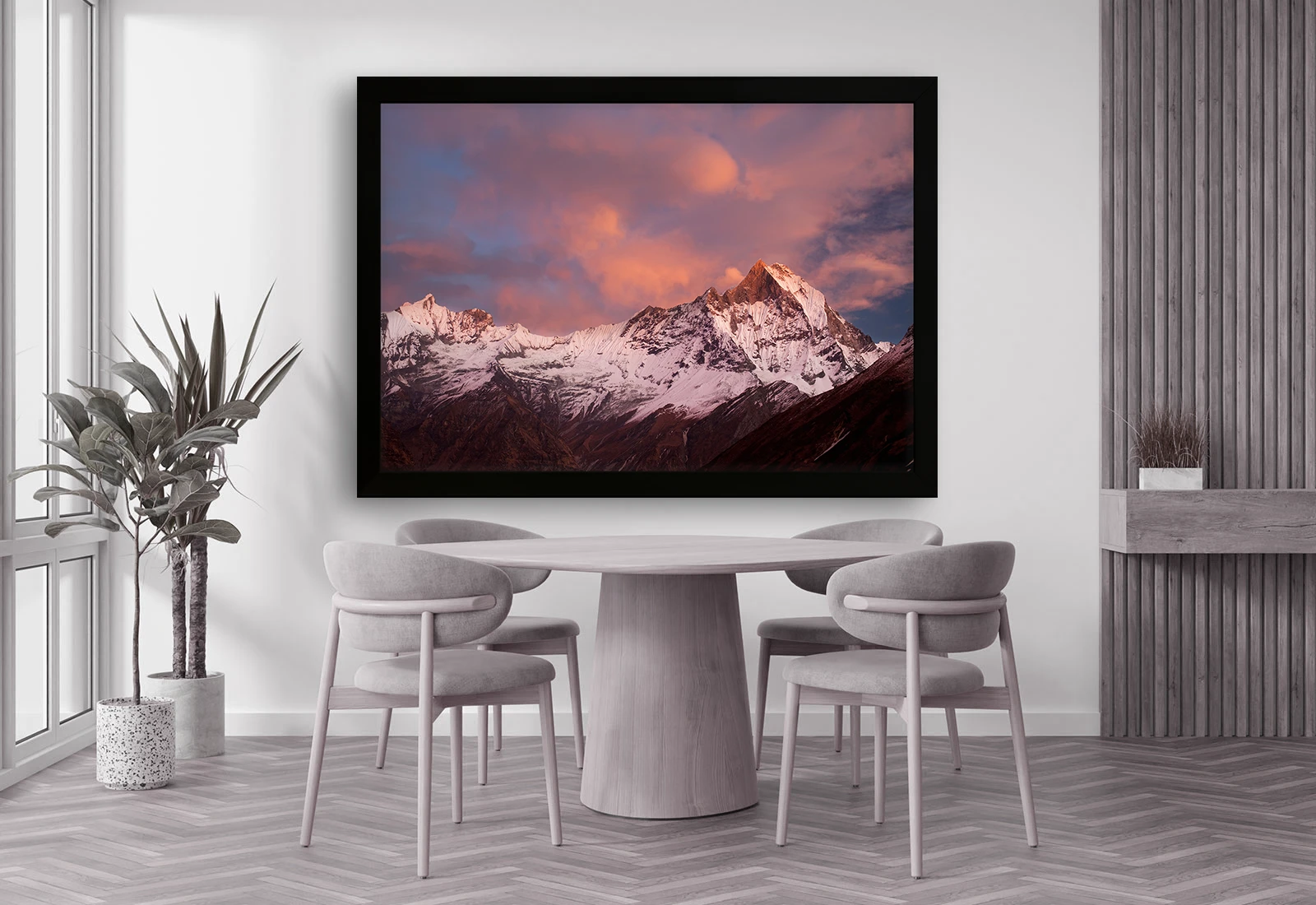 ✅ Tablou cu munți și cer la apus, tablouri Chișinău. ✓ Imagine detaliată cu zăpadă și nori colorați. 🚚 Livrare în Chișinău și Moldova. ⭐ Art-Design.md