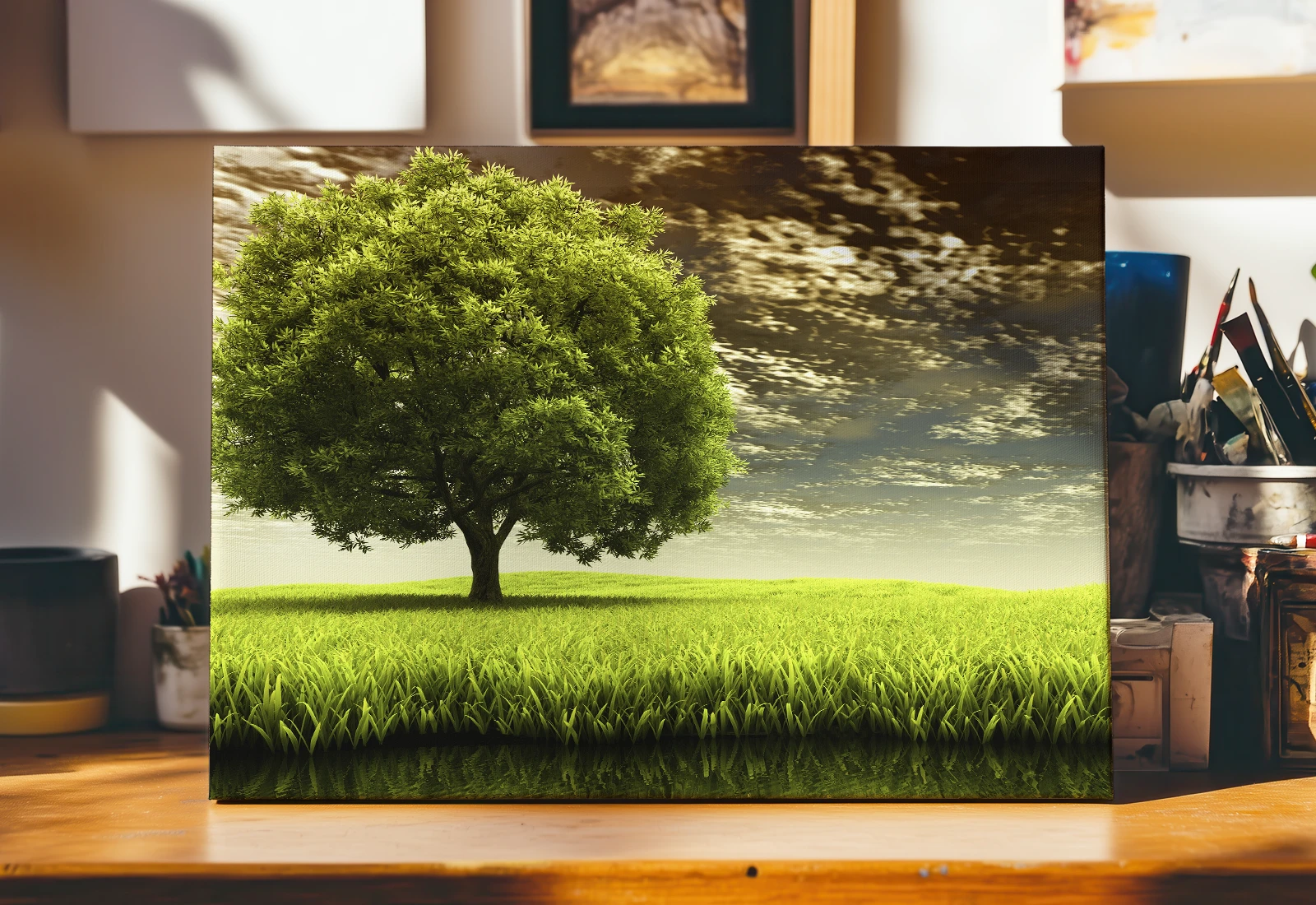 ✅ Peisaj: copac ramificat și cer pe pânză. ✓ Saturație ridicată a culorilor și oglinda apei. 🚚 Livrare în Moldova. ⭐ tablouri pe perete - Art-Design.md