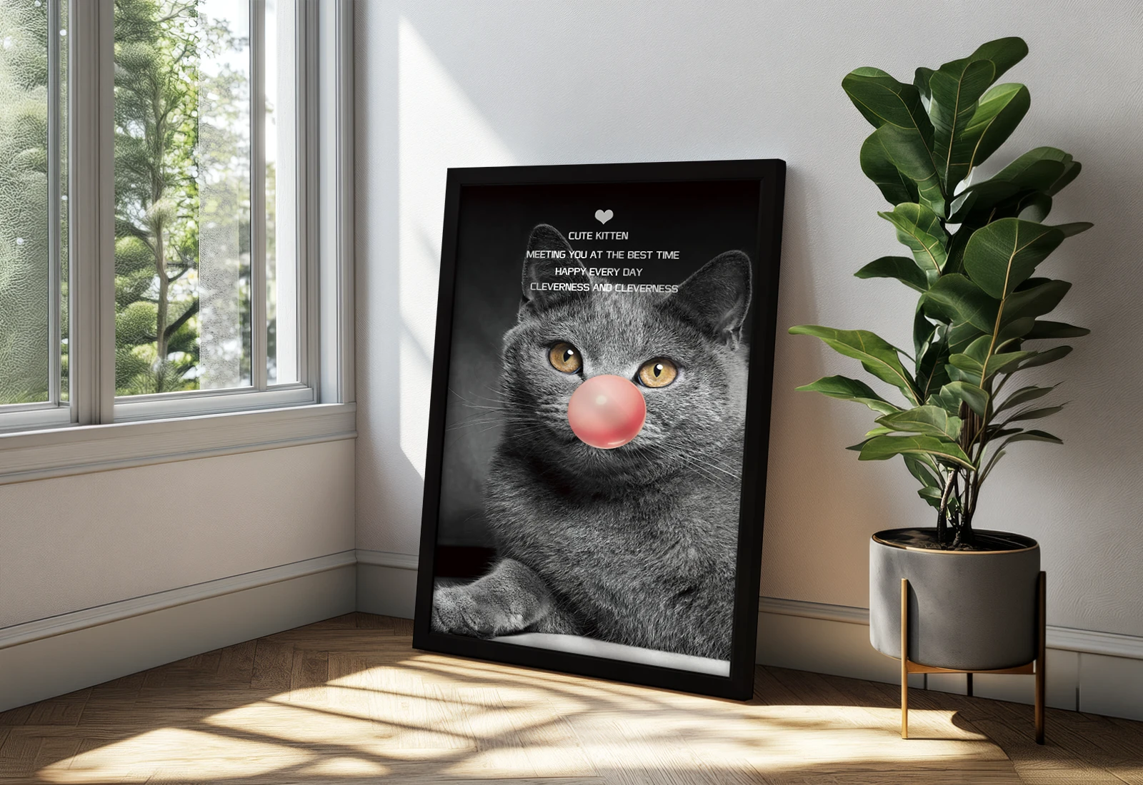 ✅ Tablou cu ramă cu pisică și balon roz. ✓ Imagine jucăușă cu blană moale și ochi expresivi. 🚚 Livrare în Chișinău. ⭐ tablou decorativ - Art-Design.md