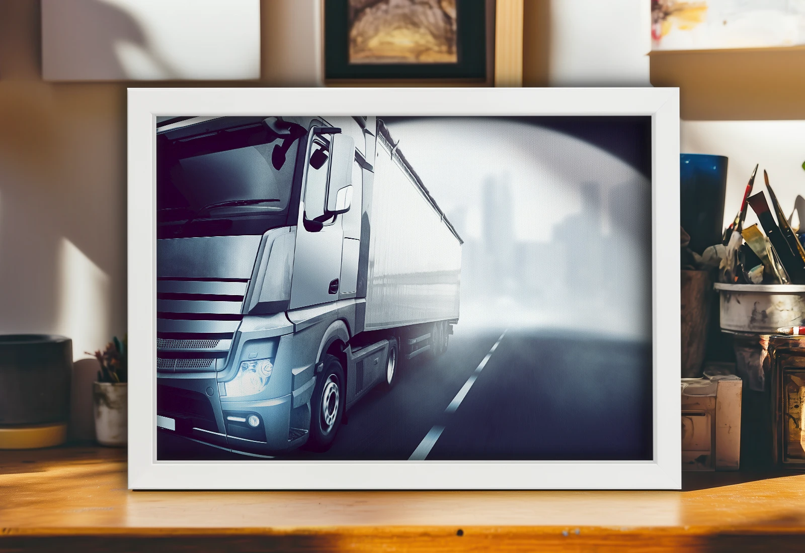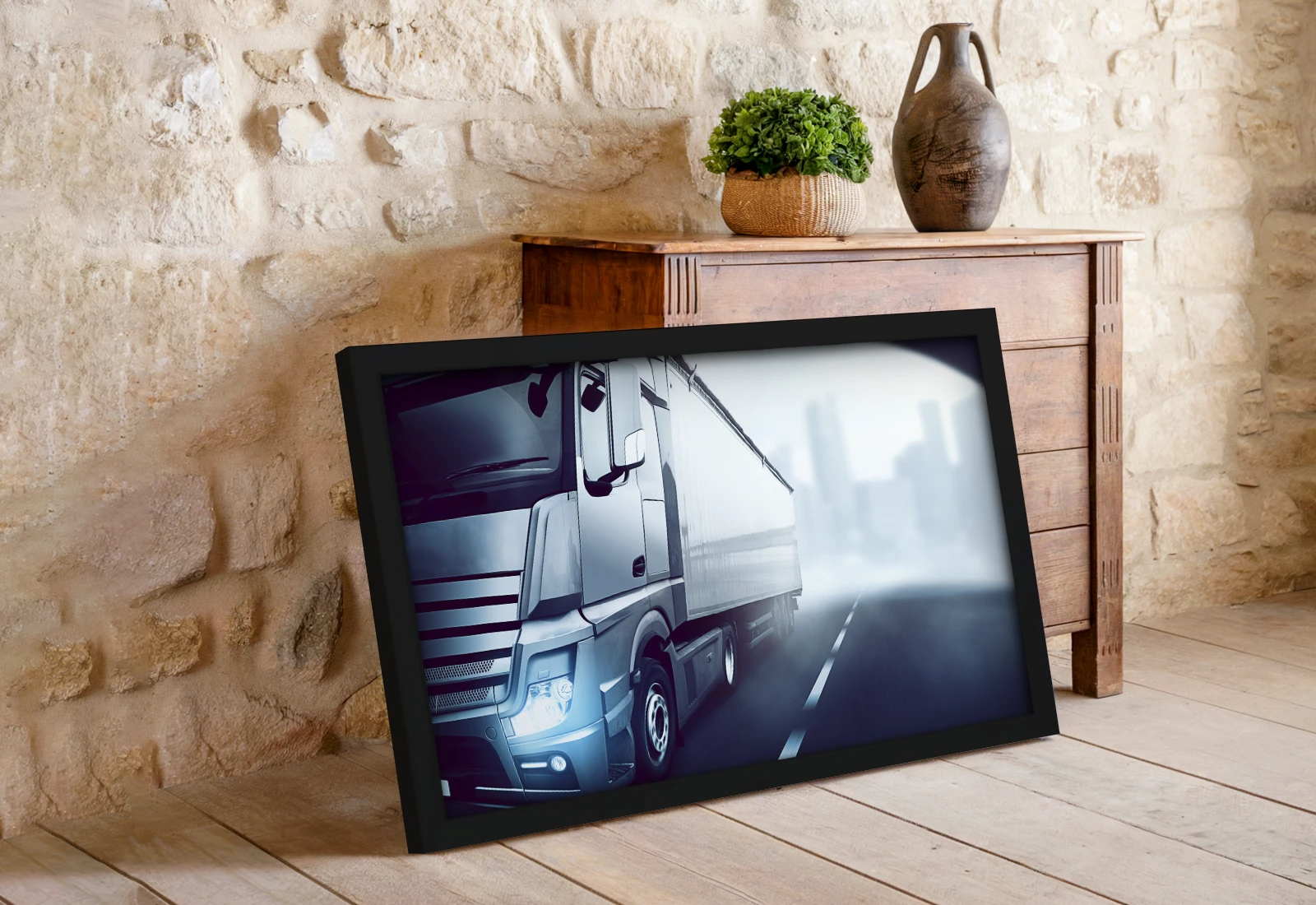✅ Tablou cu ramă cu camion pe șosea, tablouri Chișinău. ✓ Dinamică și stil industrial pentru interior. 🚚 Livrare în Chișinău și Moldova. ⭐ Art-Design.md
