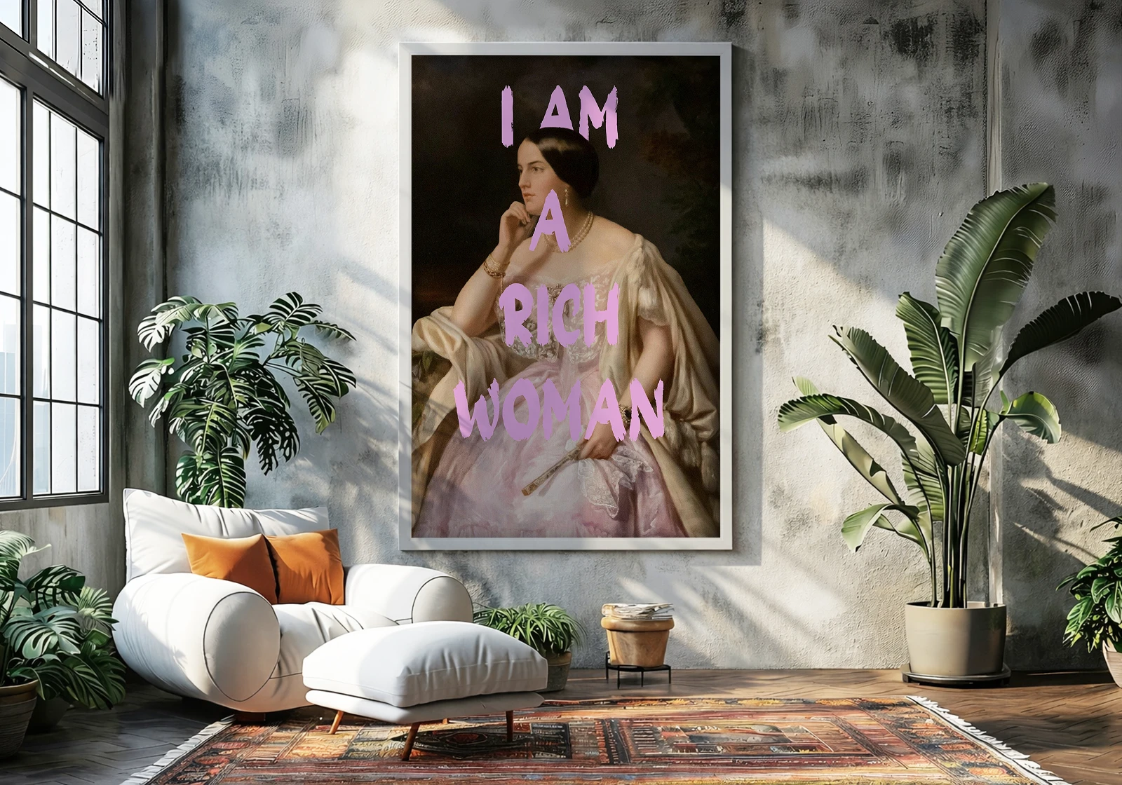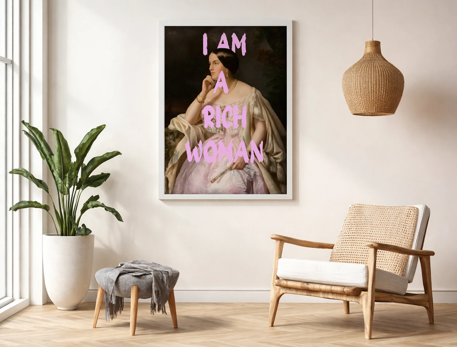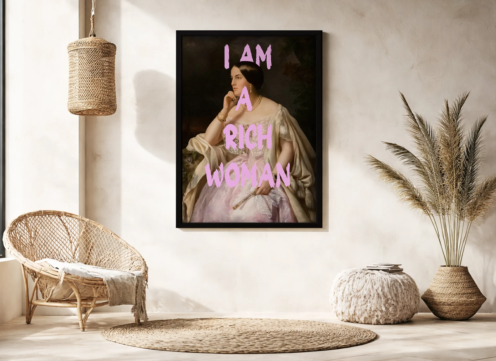 ✅ Tablou cu ramă Chișinău cu femeie și text I AM A RICH WOMAN. ✓ Poster decorativ modern pentru interior elegant. 🚚 Livrare în Chișinău. ⭐ Art-Design.md