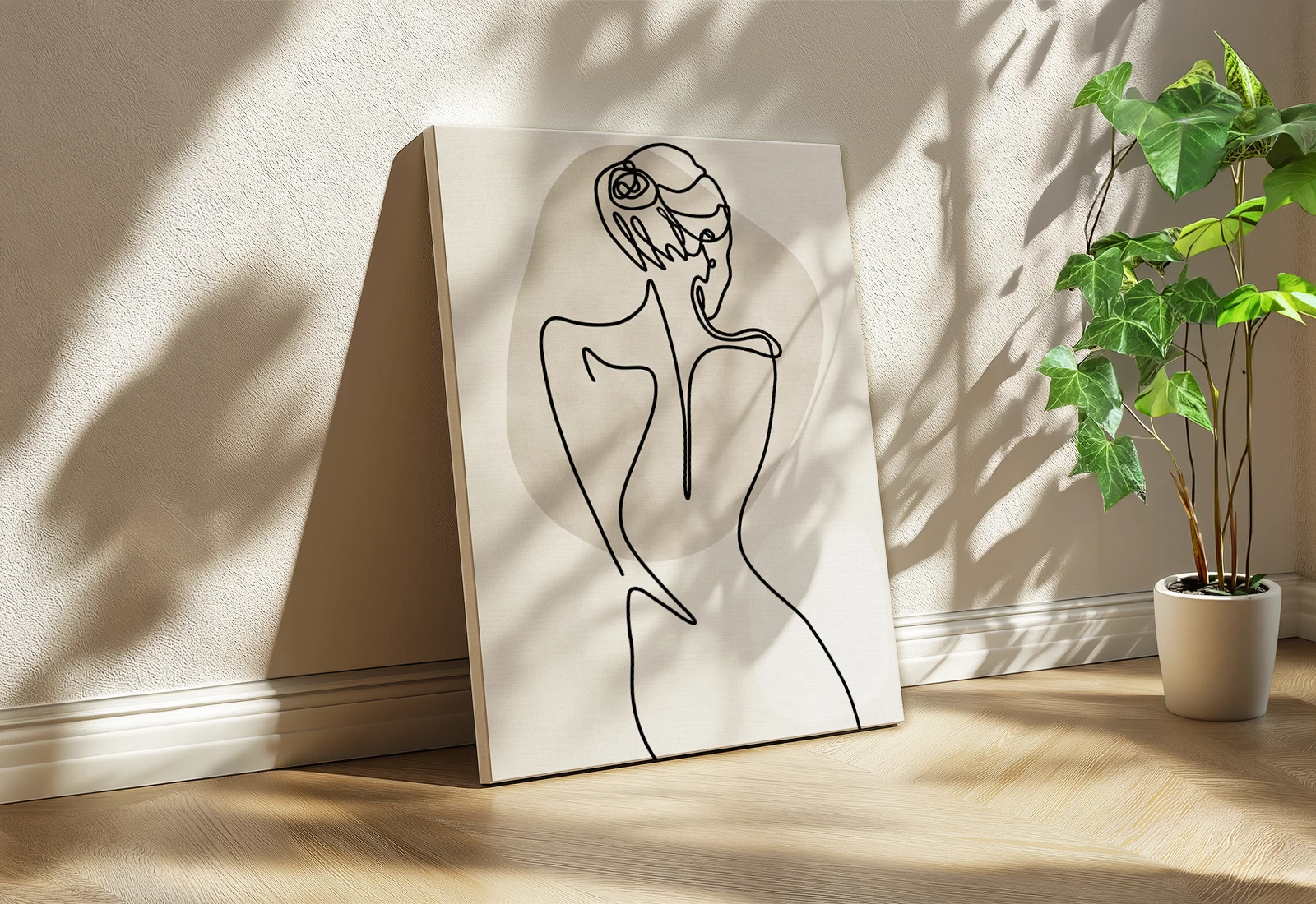 Privind această pânză, simt o estetică incredibilă a simplității și a feminității rafinate. Este o imprimare latex de înaltă calitate pe pânză naturală, reprezentând conturul grațios al spatelui unei femei, realizat în populara tehnică a liniei continue (Line Art).