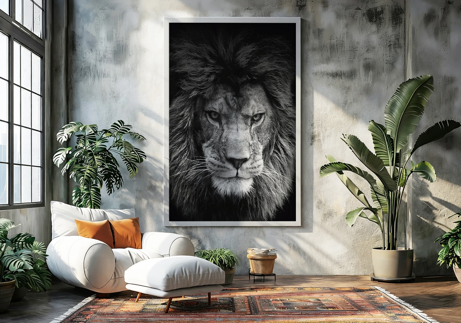 ✅ Tablouri Chișinău cu portret de leu alb-negru. ✓ Tablou cu ramă pentru interior modern. 🚚 Livrare în Chișinău și Moldova. ⭐ Art-Design.md