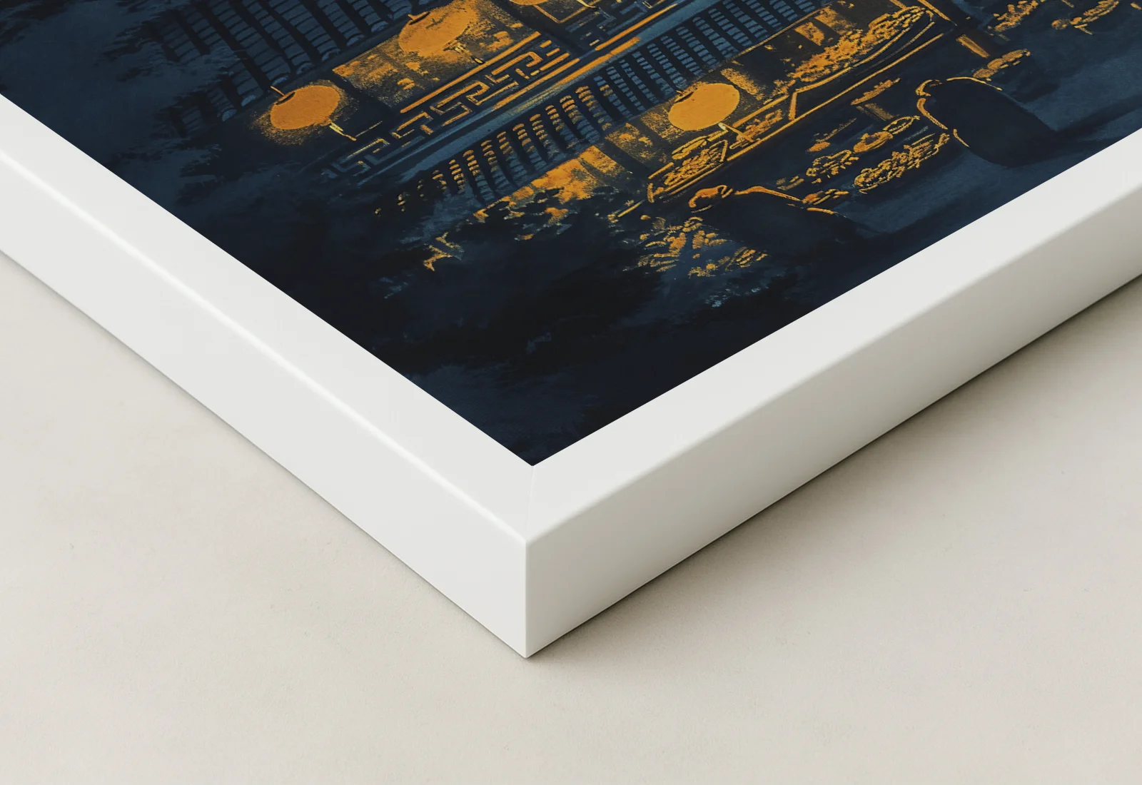 ✅ Tablou în ramă cu oraș nocturn și lumini de felinare pentru decor. ✓ Atmosferă caldă pentru interior. 🚚 Livrare în Moldova. ⭐ Print tablouri - Art-Design.md