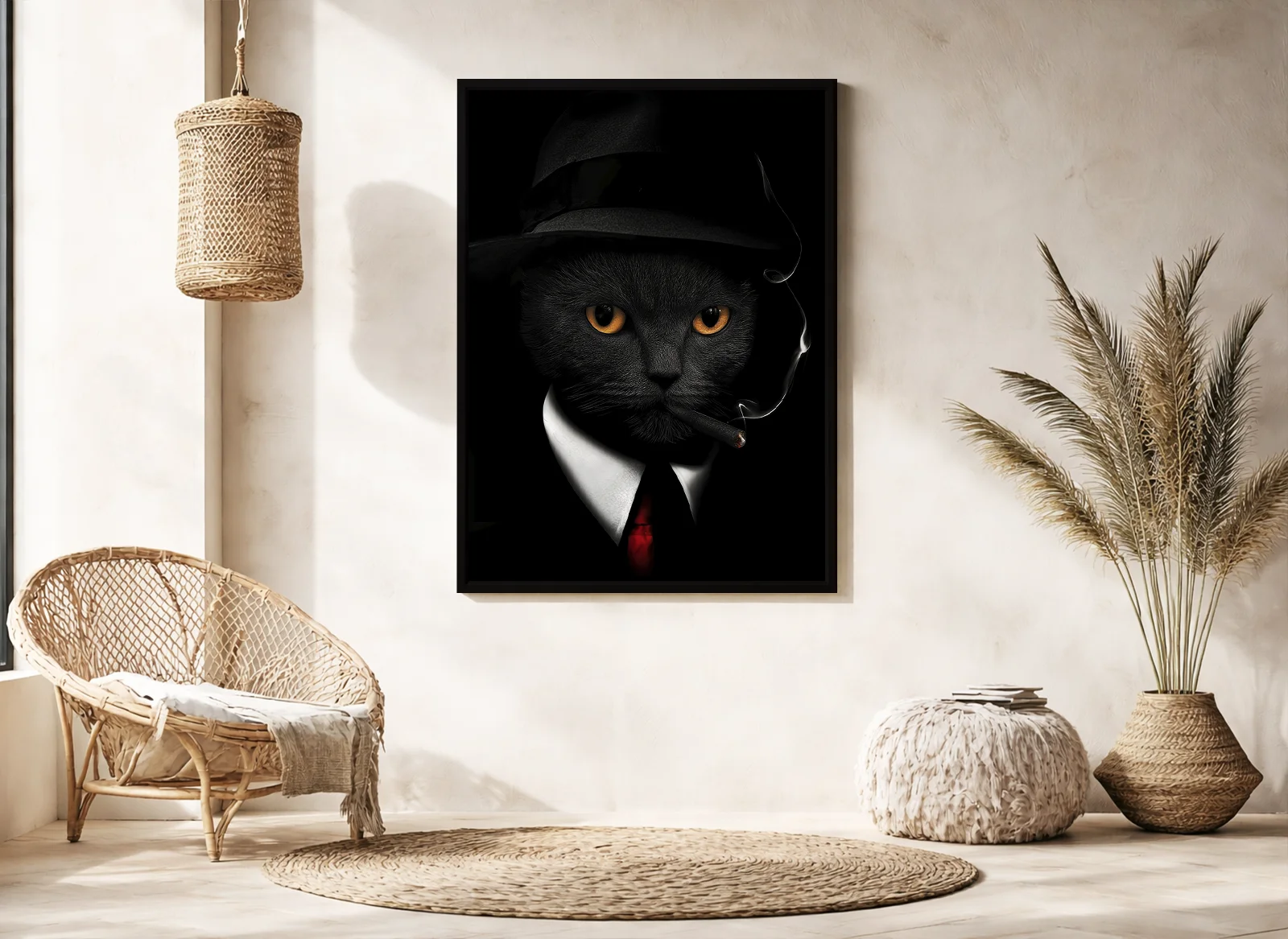 ✅ Tablou în ramă cu pisică în pălărie pentru decor. ✓ Element original pentru interior. 🚚 Livrare în toată Moldova. ⭐ Print tablouri - Art-Design.md