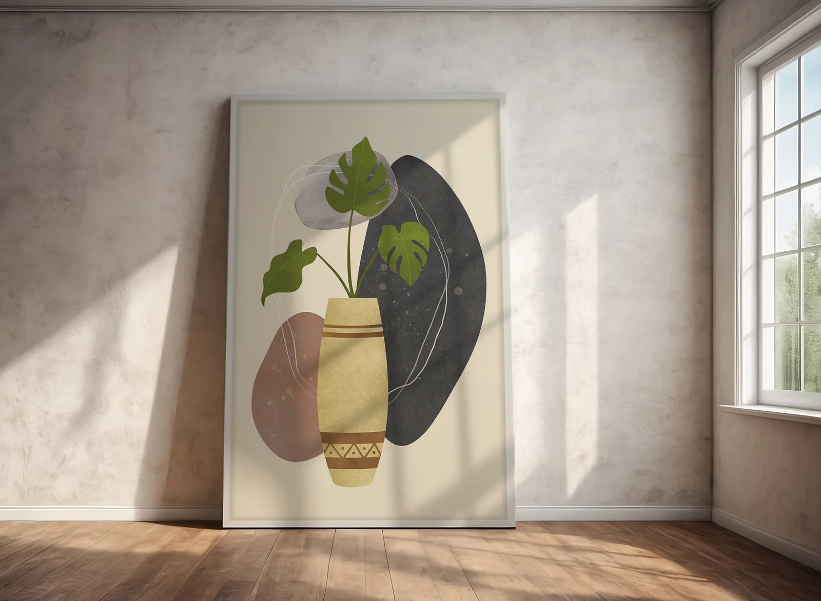 ✅ Tablou în ramă cu plantă stil simplu și elegant. ✓ Accent natural pentru decor interior. 🚚 Livrare în toată Moldova. ⭐ Print tablouri - Art-Design.md